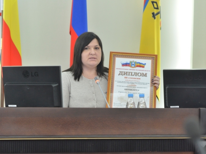 Заседание Думы началось с приятной церемонии награждения Благодарственным письмом городской Думы города Шахты депутата по избирательному округу №6 Андрея Шмелева и вручения именных стипендий студентам ВУЗов и СУЗов города Шахты по итогам зимней зачётной сессии 2014-2015 учебного года. Церемонию провели председатель городской Думы Ирина Жукова и мэр города Денис Станиславов.