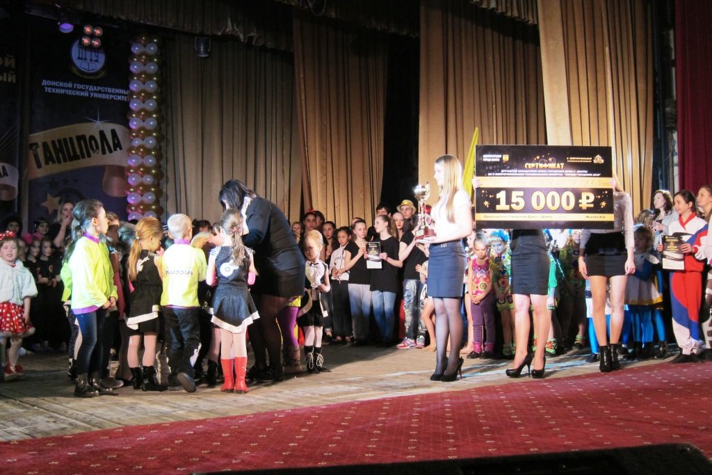 И вот — объявление результатов конкурса, самый волнующий момент! Кубок департамента культуры за 3 место шахтинскому коллективу «Империя танца» вручает директор департамента культуры Светлана Морозова. Кубок городской Думы и сертификат на 15 тысяч рублей за 2 место коллективу «Точка отчёта» современного танца центра матери и ребёнка «Алиса» вручает председатель городской Думы Ирина Жукова. А кубок победителей и сертификат на 20 тысяч рублей от Донского государственного технического университета достаётся ростовскому танцевальному коллективу «Талисман»! Конечно, были отмечены призами, наградами, дипломами и другие участники конкурса во всех четырёх возрастных номинациях.