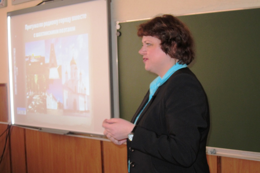 Конечно, кроме приветствия столь достойных гостей на шахтинской земле председатель городской Думы Ирина Жукова приехала на семинар ещё с одной целью: посетить открытый урок литературы в пятом классе на тему «Прогулка с шахтинскими поэтами по родному городу», который должна была провести Людмила Новомирская. В настоящее время Людмила участвует в конкурсе «Учитель года города Шахты 2015» и очень многие жители округа №17 за неё болеют, желают победы. Ученики школы №22 знают: Людмила Владимировна — самый умный, душевный и требовательный учитель! Её уроки — настоящие произведения искусства, она трепетно относиться к произведениям поэтов и писателей, умеет показать силу их слов, строк и одновременно учит красиво и грамотно формулировать собственные мысли.