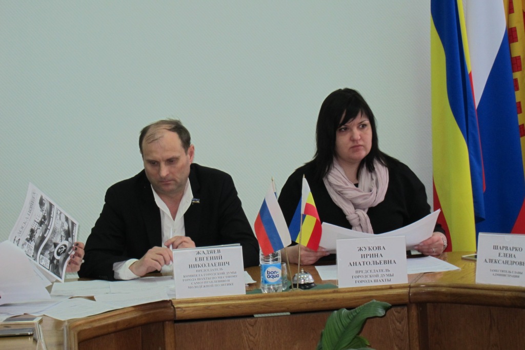 Первый вопрос — «О разработке дизайн-проекта внесения символики государственного праздника «День победы» в оформление Доски почета заслуженных граждан города Шахты», выступил А.М.Кулешов. Депутатам был представлен эскизный проект интеграции фирменного стиля государственного праздника «День Победы»в оформление Доски Почёта, содержащий два графических решения и фотомонтаж». Вопрос вынесен на рассмотрение Думы.