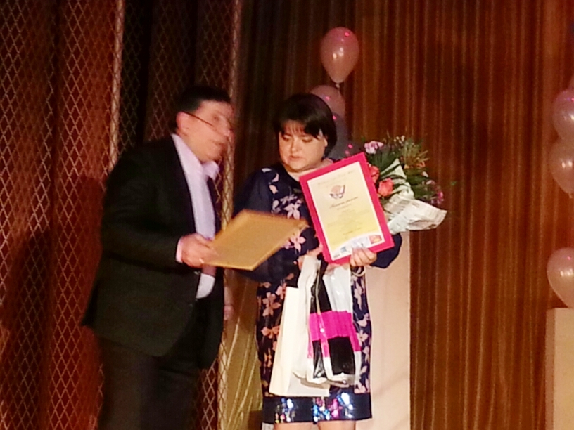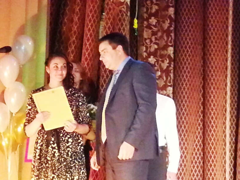 И вот всё ближе самая главная премия… Но есть ещё одна номинация — «Профессионализм и компетентность», на сцену приглашается начальник организационно-правового отдела городской Думы Анна Сафронова, которая от имени председателя городской Думы и депутата по округу №17 Ирины Жуковой вручает премию в 10 тысяч рублей Людмиле Новомирской! Людмила — преподаватель русского языка и литературы школы 22, талантливый педагог, она с блеском провела открытый урок «Прогулки по городу», на котором присутствовала Ирина Жукова.