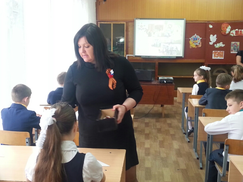 Ученики школы 22 тоже очень хорошо подготовились к уроку, они читали стихи о войне, вспоминали самые важные события тех лет, рассказывали о блокадном Ленинграде и обороне Сталинграда. В завершение урока Ирина Жукова подарила ребятам значки в честь 70-летия Победы.