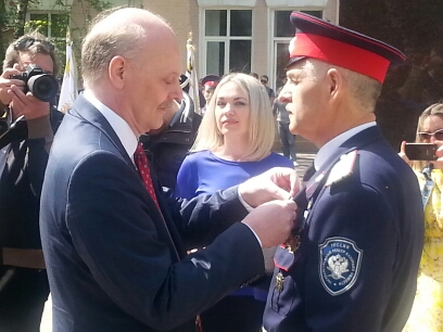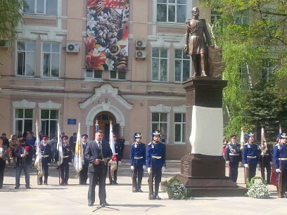 Площадь около филиала ДГТУ на пересечении улиц Шевченко и Пушкинской была полна, по периметру расположились кадеты, казаки, студенты и школьники, жители города. Мэр города Денис Станиславов выразил благодарность всем людям, которые приняли активное участие в изготовлении памятника, а перед этим активно ходатайствовали о необходимости его установки. Председатель городской Думы Ирина Жукова, обращаясь к присутствующим, сказала: