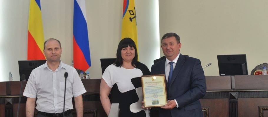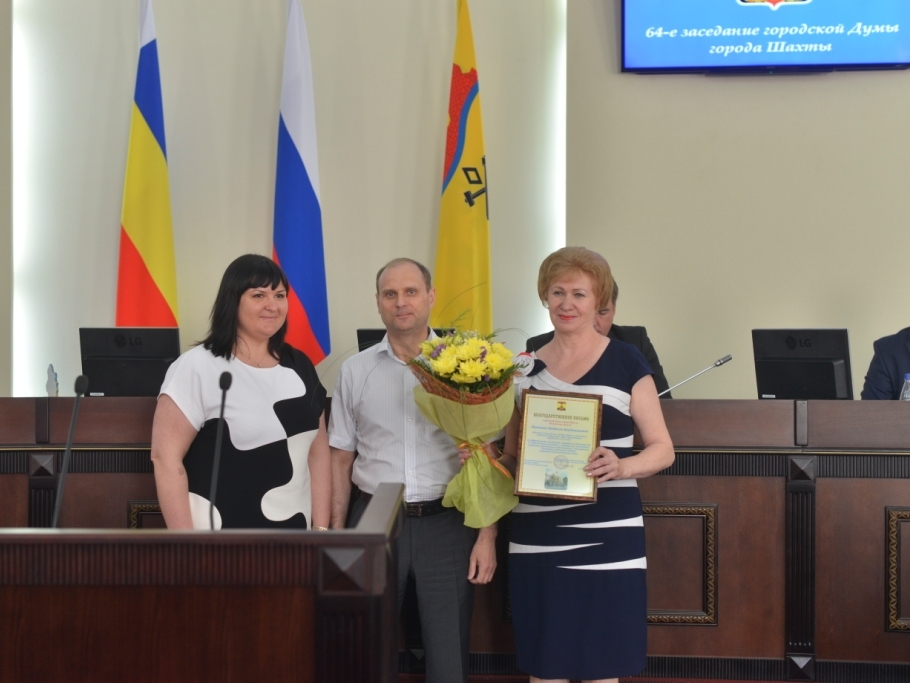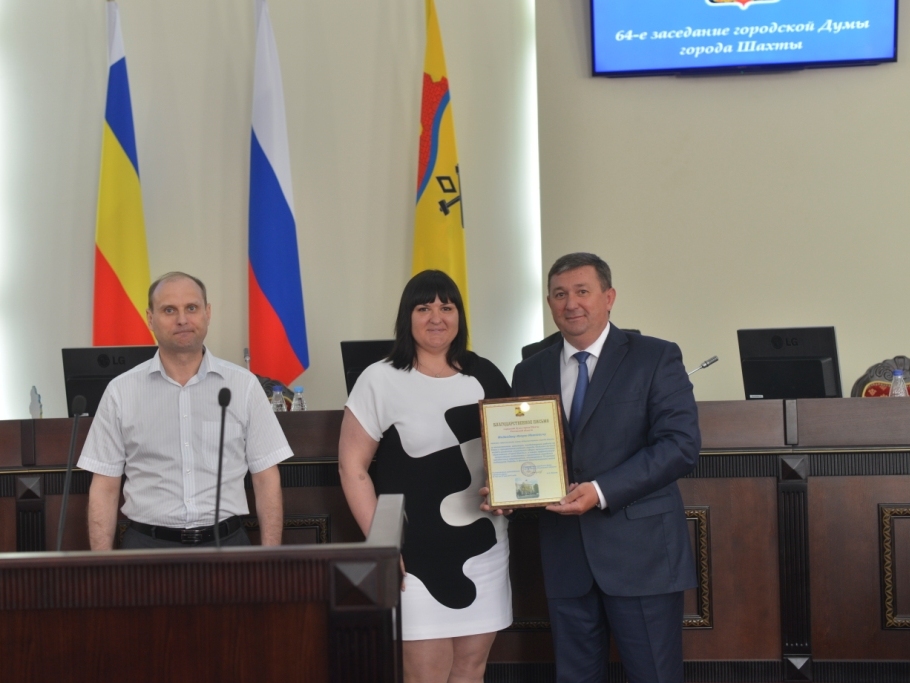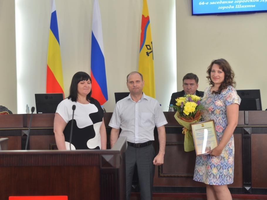 Одиннадцатый вопрос — «О награждении Почетной грамотой городской Думы города Шахты Стенякиной Дарьи Петровны», выступил председатель комитета по МСУ и МП Е.Н.Жадяев. Д.П.Стенякина ведет активную политическую и общественную деятельность. С 2006 года – член Шахтинского местного отделения Всероссийской общественной организации «Молодая Гвардия Единой России». С 2008 по 2014 год – руководитель штаба ШМО ВОО «Молодая гвардия Единой России». В 2012 году избрана в Ростовский региональный штаб ВОО «Молодая гвардия Единой России». В 2008 году избиралась депутатом Молодёжного парламента третьего созыва по избирательному округу №10. С 2008 по 2010 год являлась председателем комитета по решению социальных проблем молодежи Молодежного парламента при городской Думе города Шахты третьего созыва. В течение четвертого и пятого созывов Стенякина Д.П. избиралась председателем Молодежного парламента при городской Думе города Шахты.