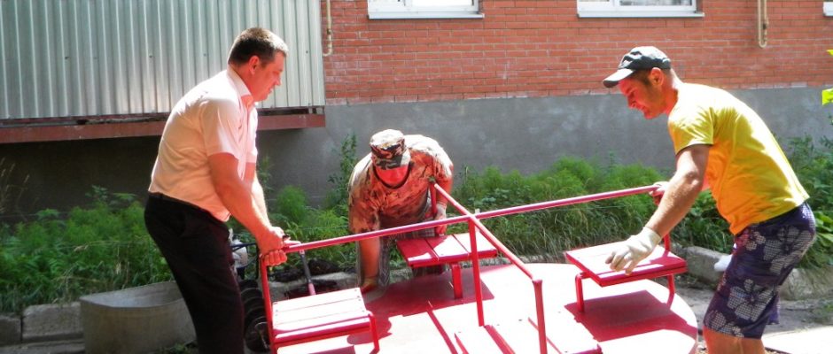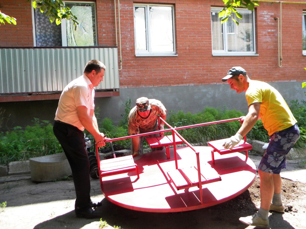 На очередном приеме к О.В.Кундрату обратилась жительница поселка Петровский Надежда Петровна Асеева с просьбой об оказании содействия в приобретении и установке детской карусели на 8 мест по улице Хомякова, 8. Эту детскую площадку жители обустраивают уже в течение трех лет за свои личные средства, приобретают качели, беседки, горки. А папы детишек сделали песочницы, столики и лавочки. Депутат откликнулся на просьбу и приобрел карусель за счет личных средств. На открытие площадки в этом году собралось много детей родителями, бабушками и дедушками. Олег Кундрат пожелал ребятам здоровья и хорошего летнего отдыха!