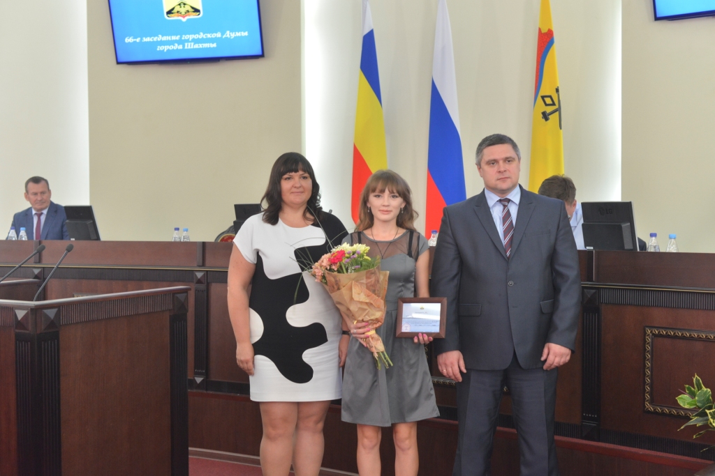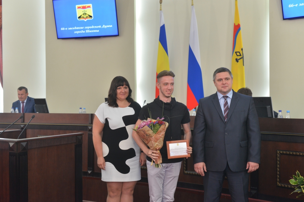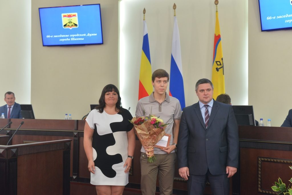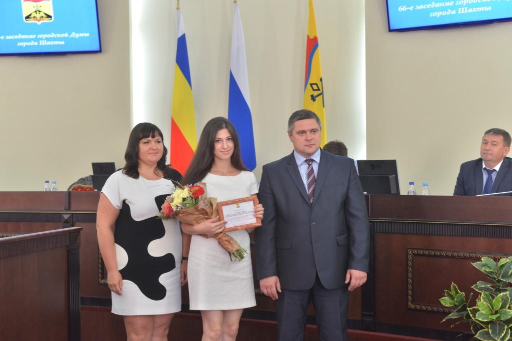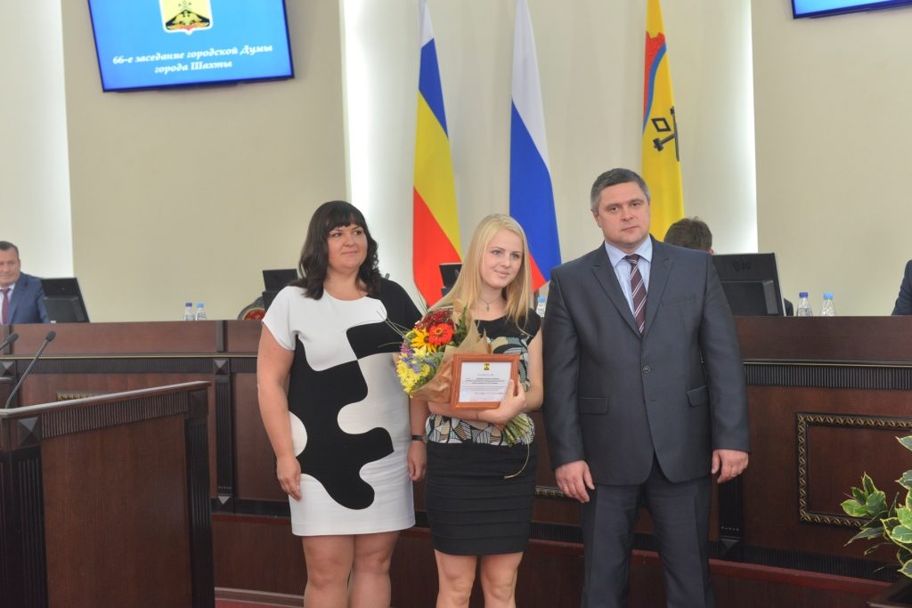 Также были вручены именные стипендии студентам ВУЗов и СУЗов города Шахты по итогам летней зачетно-экзаменационной сессии 2014-2015 учебного года. Стипендиатами мэра в этом году стали: Агаян Виолетта Арсеновна — студентка 3 курса Института сферы обслуживания и предпринимательства (филиала) ФГБОУ ВПО «Донской Государственный Технический Университет» в г. Шахты Ростовской области, Скирдачев Владислав Александрович — студент 3 курса Института сферы обслуживания и предпринимательства (филиала) ФГБОУ ВПО «Донской Государственный Технический Университет» в г. Шахты Ростовской области, Греков Артем Дмитриевич — студент 4 курса Шахтинского Института (филиала) ФГБОУ ВПО «ЮРГПУ (НПИ) им. М.И. Платова», Кравцова Марина Николаевна — студентка 2 курса ГБОУ НПО РО Профессиональное училище №38, Кудрявцева Анастасия Геннадьевна — студентка 2 курса ГБПОУ РО «Шахтинский региональный колледж топлива и энергетики им. ак. П.И. Степанова». Стипендиатами Думы в этом году стали: Гаврилов Евгений Николаевич – студент 2 курса ГБОУ НПО РО ПУ «Шахтинский техникум дизайна и сервиса «Дон-Текс»; — Морозова Виктория Сергеевна – студентка 4 курса Шахтинского института (филиала) ФГБОУ ВПО «Южно-Российский Государственный политехнический университет (НПИ) имени М.И.Платова»; — Синица Карина Александровна – студентка 5 курса ФГБОУ СПО РО «Шахтинский музыкальный колледж»; Чехачева Татьяна Сергеевна — студентка 3 курса ШФ ЧУВО «Южно-Российский Гуманитарный институт»; Чумакова Оксана Вячеславовна — студентка 4 курса Института сферы обслуживания и предпринимательства (филиала) ФГБОУ ВПО ДГТУ.
