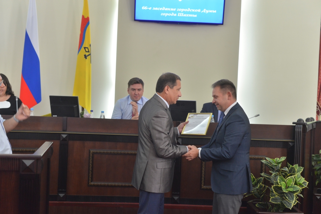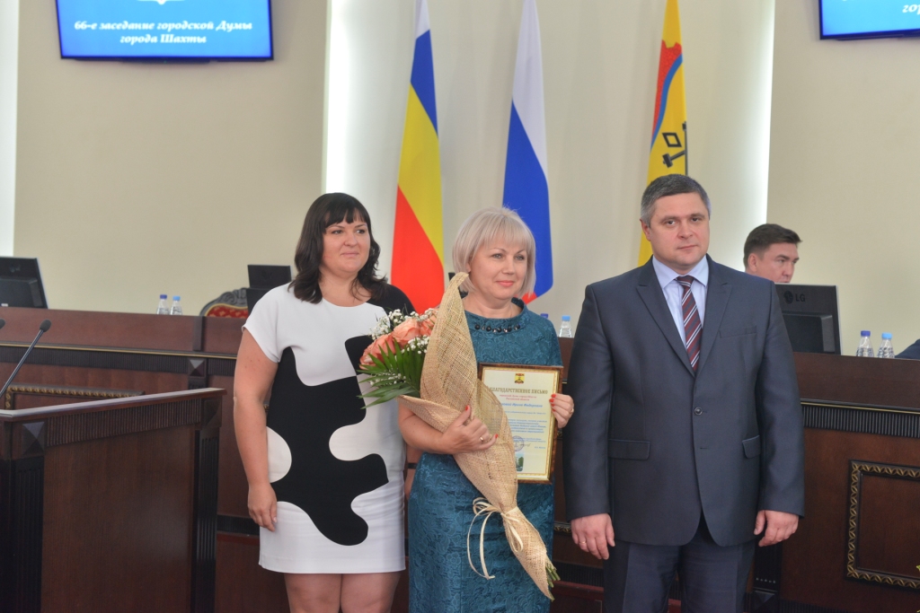 Перед началом рассмотрения основной повестки дня мэр Денис Станиславов и председатель Думы Ирина Жукова провели церемонию награждения Почетной грамотой городской Думы города Шахты Коваленко Валентины Степановны, а затем Благодарственное письмо городской Думы города Шахты было вручено Кондаковой Ирине Федоровне – помощнику депутата по избирательному округу №1 Андрея Вовка.