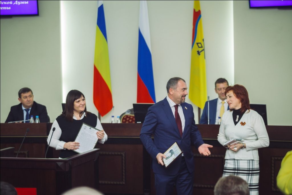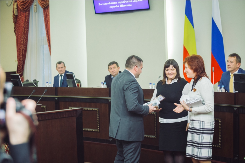 Перед началом рассмотрения основной повестки дня состоялась торжественная процедура вручения Благодарственных писем городской Думы председателем Думы — главой города Ириной Жуковой депутатам, принявшим активное участие в проекте по изданию сборника стихов шахтинской поэтессы Марии Горбатовой, которая неоднократно становилась номинантом национальной литературной премии «Поэт года», а весной 2015 года завоевала Гран-при ежегодного арт-фестиваля в номинации «Авторские проза и поэзия». За популяризацию творчества талантливых шахтинцев, заботу о повышении образовательного уровня молодёжи, поддержку литературных городских проектов, активную гражданскую позицию Благодарственными письмами Думы награждены депутат Законодательного Собрания Ростовской области Максим Щаблыкин , депутаты городской Думы Алексей Тушминцев, Тенгиз Хиникадзе, Константин Корнеев, Алексей Дерезин, Дмитрий Приходько, Александр Кундрат, Владимир Правдюк, Андрей Рябов.