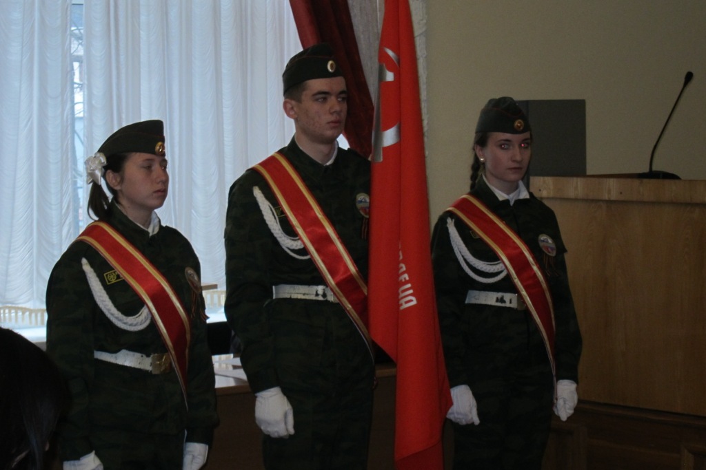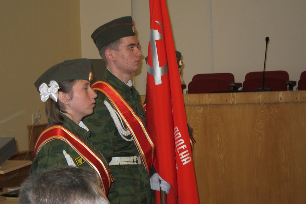 К собравшимся в зале Администрации ветеранам, депутатам, учителям и ученикам обратилась с приветственным словом председатель городской Думы — глава города Ирина Анатольевна Жукова. Она отметила, что для нашего народа всегда на первом месте был мир, потому что мы отстояли его в страшном противостоянии с фашизмом, ценой миллионов жизней. Ребята, которые приняли участие в акции, смогли прочувствовать, что значит беречь Знамя Победы — символ силы, правды и веры для сотен тысяч солдат, которые под этим красным знаменем шли в бой и умирали за Родину!