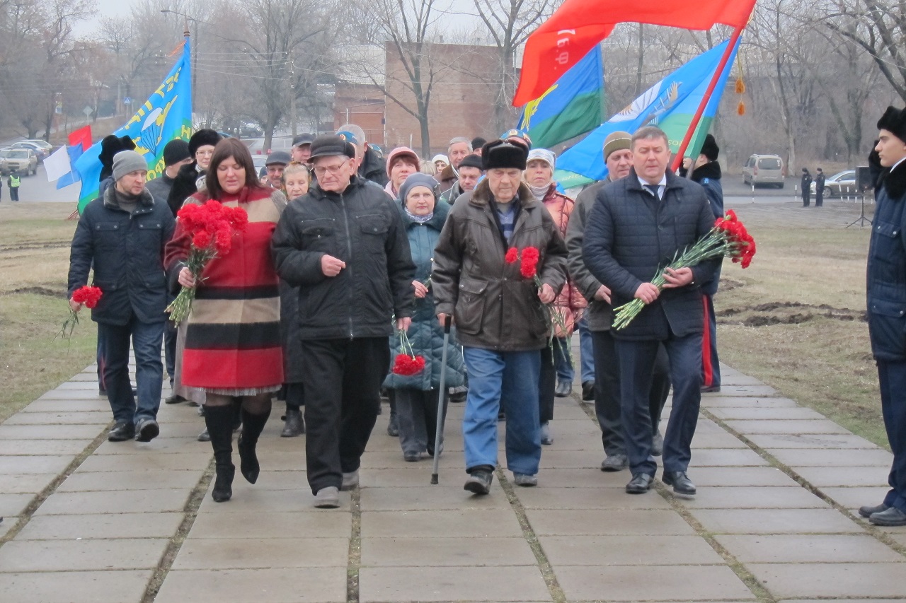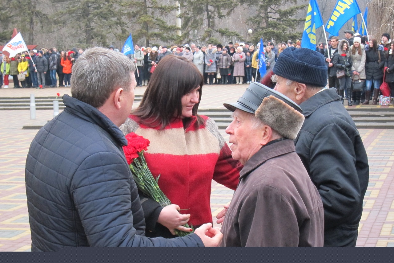 Традиционно утро этого дня началось с возложения цветов на мемориале «Жертвам фашизма» посёлка Красина. Колонну благодарных потомков возглавили председатель городской Думы — глава города Шахты Ирина Жукова, глава Администрации Игорь Медведев, депутаты городской Думы. В живой коридор выстроились кадеты. Ветераны, школьники, активисты «Молодой гвардии Единой России» и жители города несли цветы в дань памяти всем, кто был уничтожен немцами в страшные годы оккупации, сброшен в шурф шахты Красина. Также первые лица города возложили цветы к памятнику Воина-освободителя. А в 11.00 в Александровском парке у Вечного огня состоялся торжественный митинг в честь Дня освобождения города. Обращаясь к присутствующим, председатель городской Думы — глава города Ирина Жукова сказала: — Когда 73 года назад территорию города покинул последний немецкий сапог и перестала звучать на улицах немецкая речь, шахтинцы впервые за много месяцев вздохнули свободно и подняли головы. Был холодный февральский день, но в душах людей наступила весна! Это была великая радость — одна на всех! И великая скорбь за всеми, кто принял мученическую смерть. Семь месяцев длилась оккупация города. За это время враги уничтожили 14 тысяч горожан — женщин и детей, мужчин и стариков. Людей сбрасывали в шурф шахты Красина, пытали в застенках, расстреливали в оврагах. Наша земля полита кровью тысяч невинно убиенных людей. Наша свобода стоила очень дорого! Давно закончилась война, выросло несколько новых поколений. Но это не значит, что события тех лет стали менее важными для нас. Ведь мы — были и остаёмся наследниками Великой Победы! И вместе с болью, страданиями нашего народа наследуем его мужество, героизм, стойкость перед лицом любых вызовов современности. Наша память — щит от любых нападок, несправедливости и попыток переписать историю. Если выстояли наши отцы, деды, прадеды — выстоим и мы! Низкий поклон русскому солдату, освободившему нашу Родину и наш город от фашистов! Низкий поклон нашему народу, выстоявшему в той страшной войне! Перед собравшимися выступил глава Администрации города Игорь Медведев, он выразил глубокую признательность от лица сегодняшнего поколения солдатам-освободителям нашего города и нашей страны, всему русскому народу, отстоявшему нашу свободу и Победу! Особые слова благодарности — нашим ветеранам, которые сами являются живой историей и нашей гордостью! Поздравили шахтинцев с этим знаменательным днём заместитель председателя городского Совета ветеранов войны и труда Александр Пятаков, помощник управляющего Шахтинской епархией Симеон Есин. Первые лица города, депутаты, представители общественности и политических партий, школьники и студенты возложили венки и цветы к Братской могиле воинов Красной армии, погибших за освобождение города Шахты.