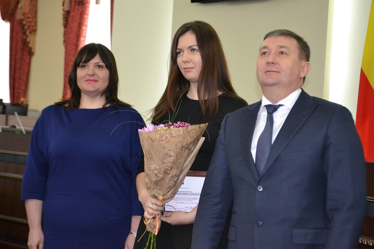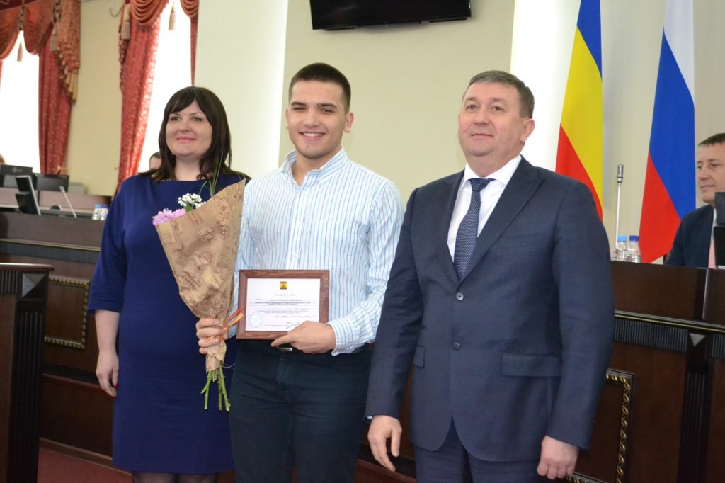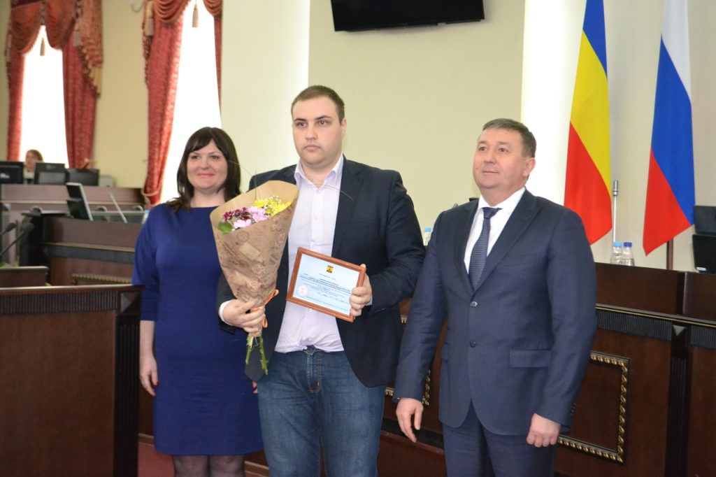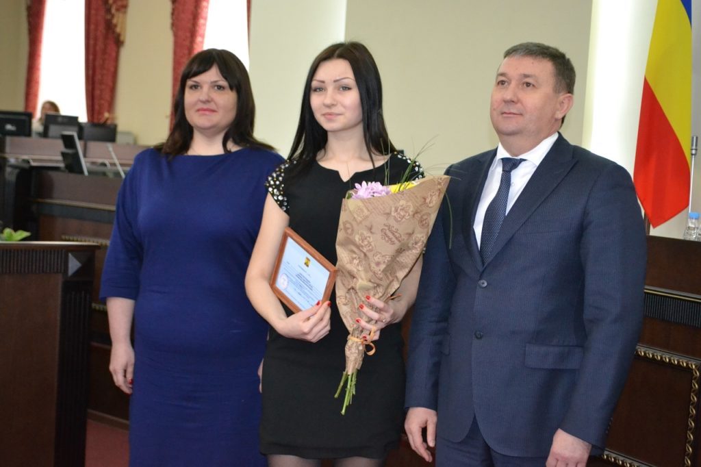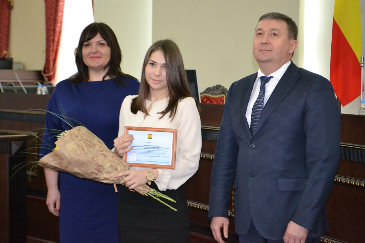 Заседание началось с торжественной процедуры вручения удостоверений о назначении именных стипендий Думы и Администрации студентам ВУЗов и СУЗов города Шахты по итогам зимней экзаменационной сессии 2015-2016 учебного года. Церемонию награждения провели председатель городской Думы — глава города Шахты Ирина Жукова и глава Администрации Игорь Медведев.