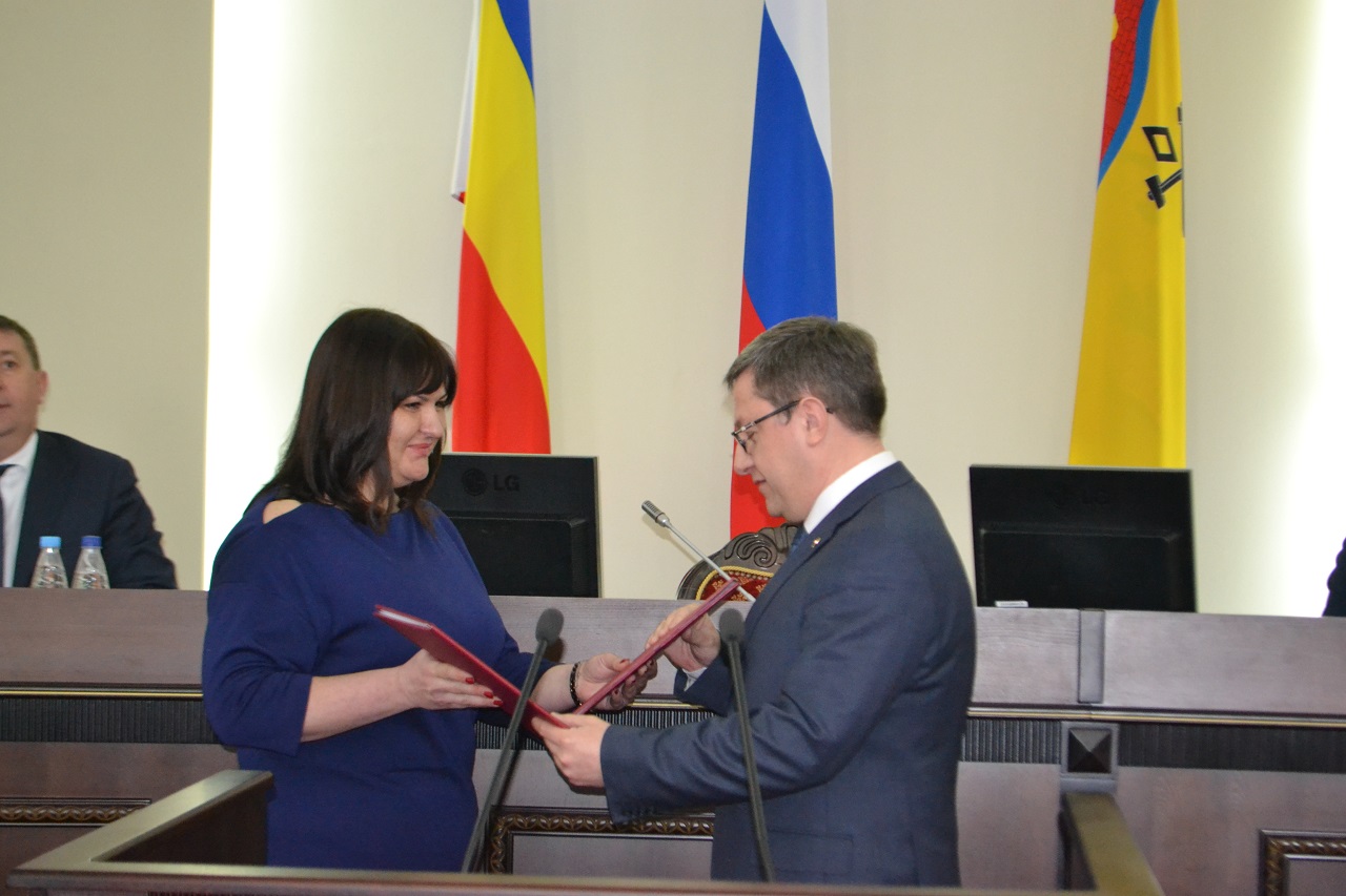 Восемнадцатый вопрос — «О внесении изменений в решение городской думы города Шахты «Об утверждении Положения «О Благодарственном письме городской Думы города Шахты Ростовской области», выступила начальник организационно-правового отдела городской Думы А.Ю.Сафронова. Изменения предложено внести с целью приведения решения городской Думы города Шахты от 27.11.2008 № 532 «Об утверждении Положения «О Благодарственном письме городской Думы города Шахты Ростовской области» в соответствие с Уставом муниципального образования «Город Шахты». Изменения Думой одобрены.