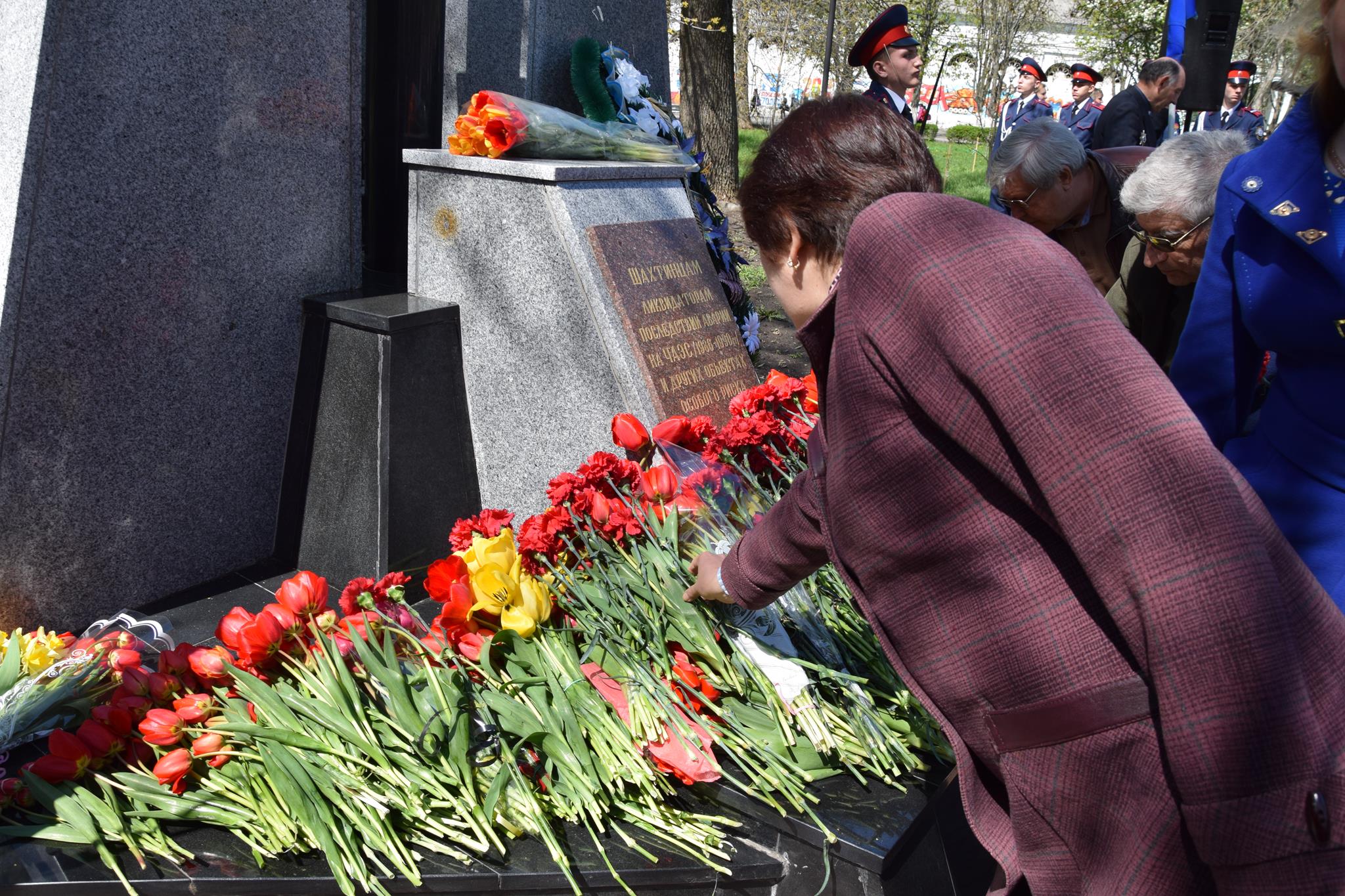 Участники митинга выразили слова благодарности погибшим ликвидаторам, возложили цветы и венки к мемориалу.