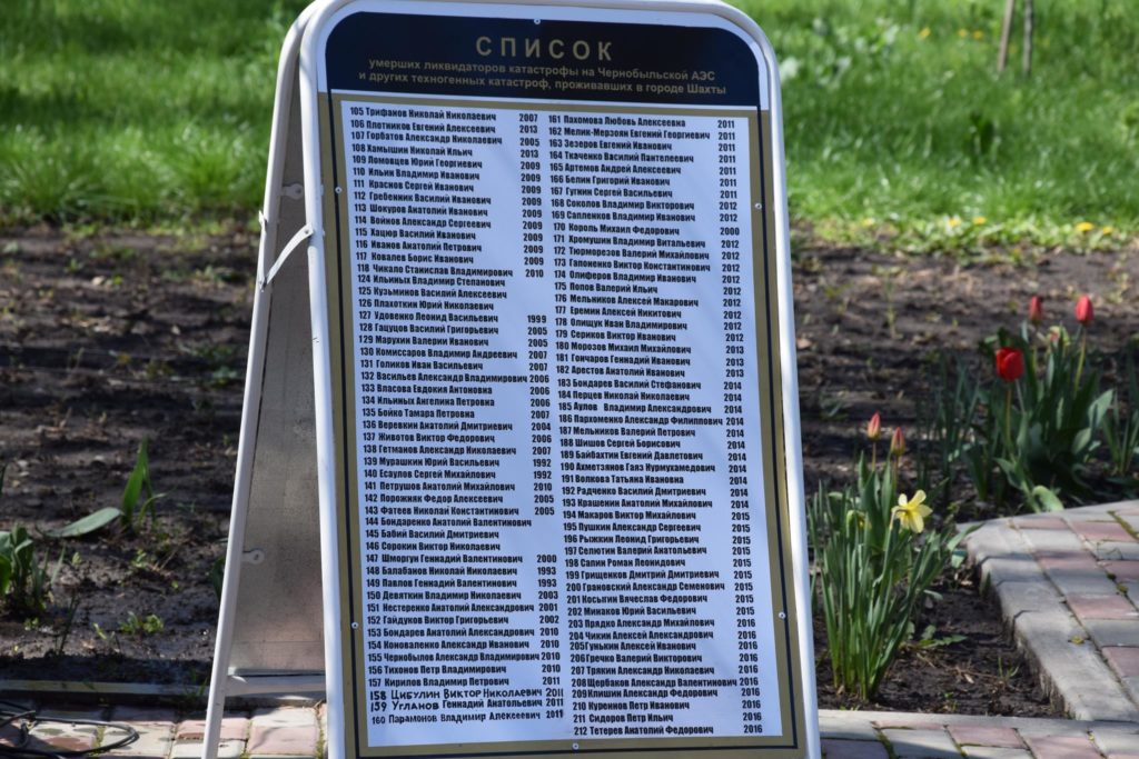 В общей сложности в ликвидации последствий аварии на ЧАЭС принимали участие 600 тысяч человек, из которых около 20 тысяч – жители Донского края. От нашего города были призваны и приняли участие в ликвидации аварии 426 человек. К сожалению, многие шахтинцы, участвовавшие в тех событиях, не дожили до наших дней.