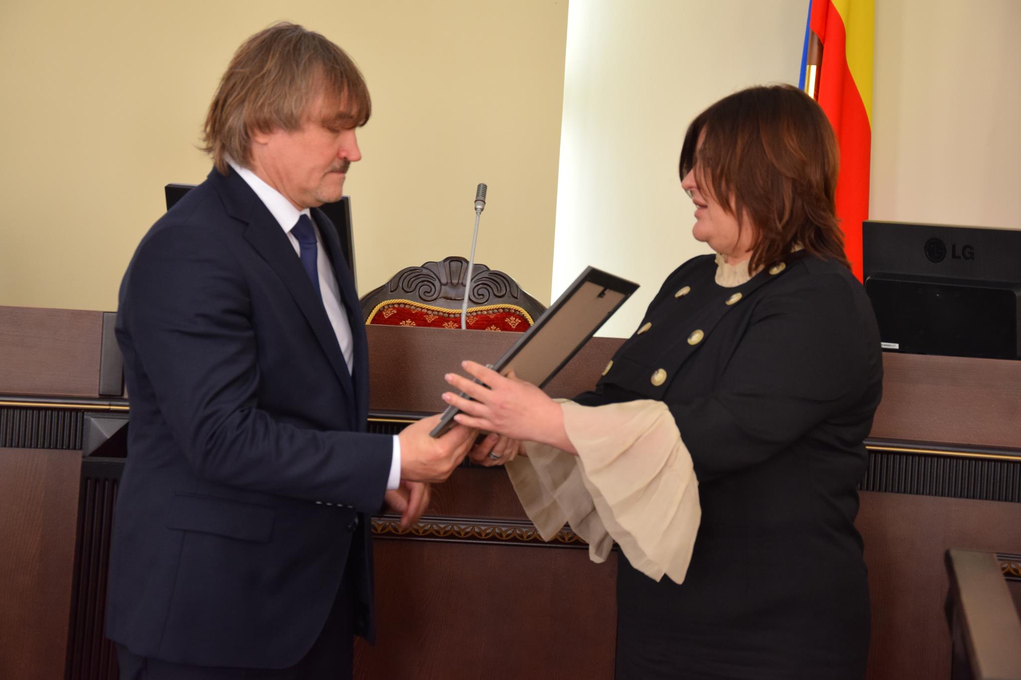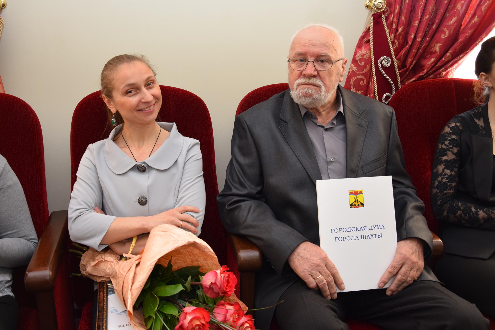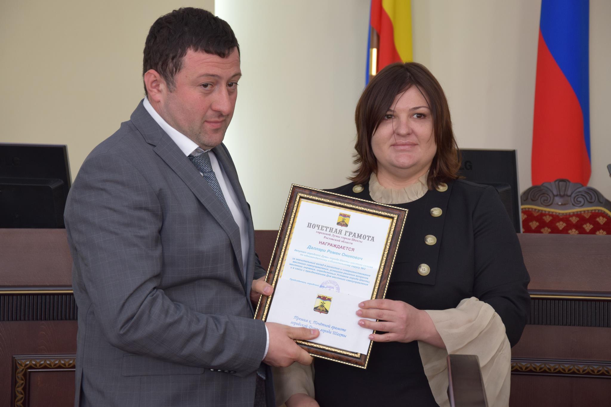 Перед тем, как перейти к процедурным вопросам, председатель городской Думы — глава города Ирина Жукова вручила Почётные грамоты городской Думы города Шахты — художнику, члену Союза художников России Владимиру Ильичу Рогову — за плодотворную творческую деятельность на протяжении 50-и лет, организацию и проведение многочисленных художественных выставок в городе Шахты и за его пределами, работу с подрастающим поколением и воспитание плеяды учеников, положительный пример мужества и трудолюбия для всех людей с ограниченными возможностями (награду получила его жена Виктория Рогова), депутатам Ромену Даллари и Андрею Горцевскому — в связи с Днём местного самоуправления.