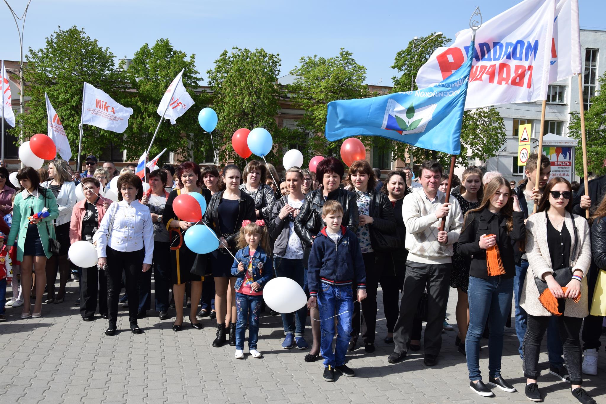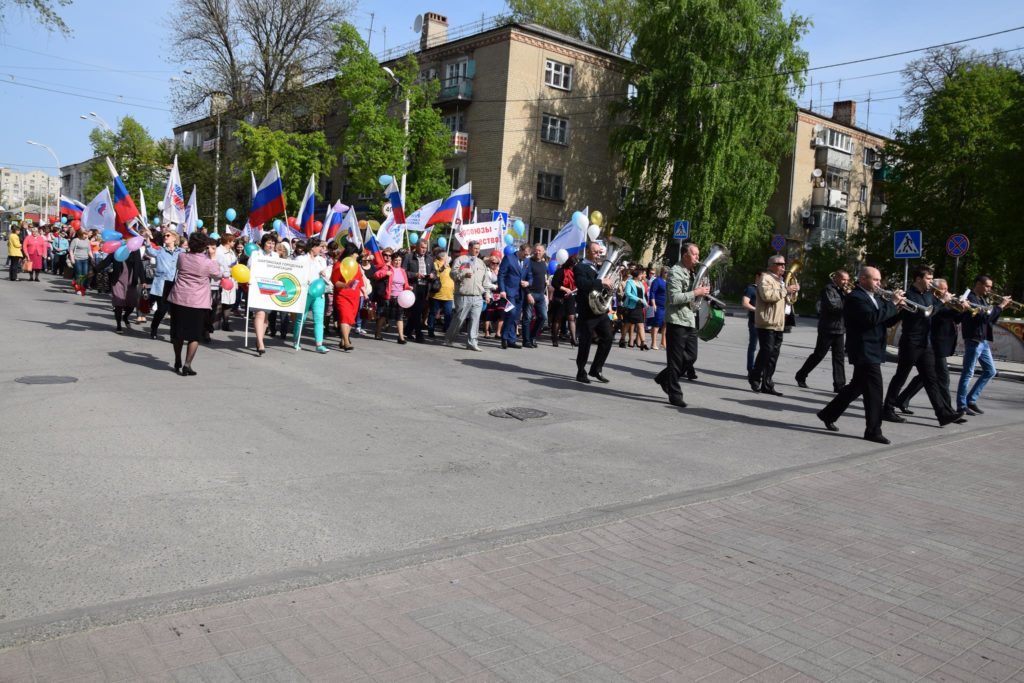 Колонна участников демонстрации с флагами, цветами, шарами в руках начала формироваться около Дома детского творчества, прошла по ул. Советской и выстроилась в ряды участников митинга на площади Ленина. Флаги отраслевых профсоюзов, воздушные шары, транспаранты с лозунгами «Качественному труду — достойную зарплату!», «Сильные профсоюзы — справедливое общество», «Образованию и здравоохранению – забота государства», «Единство, солидарность, справедливость!» – такова была символика Первомая.