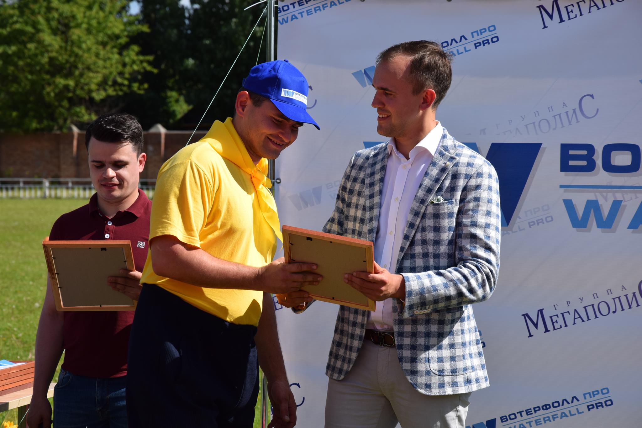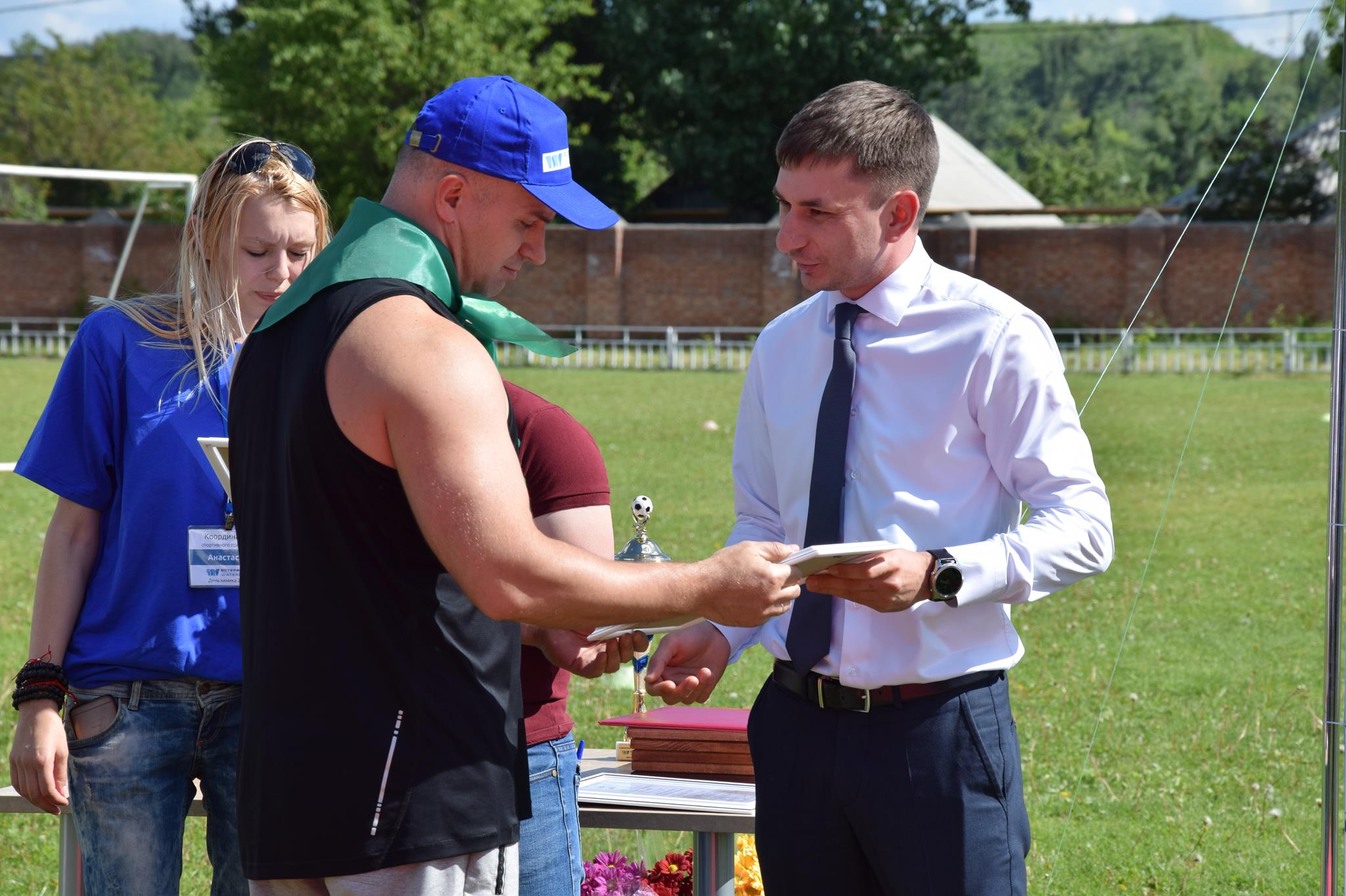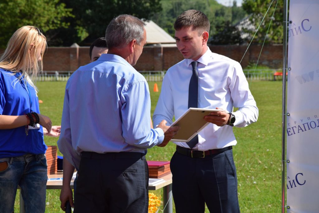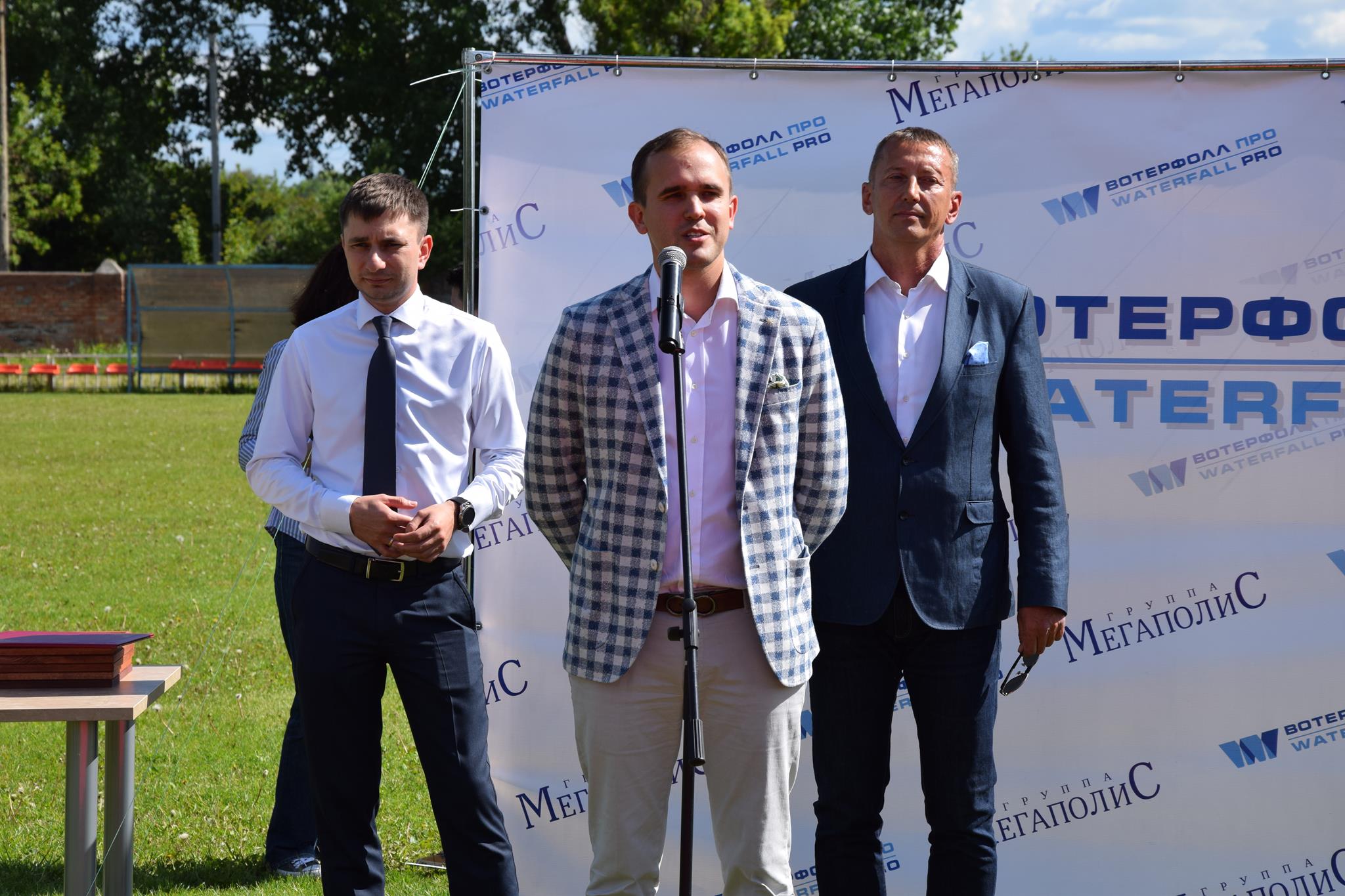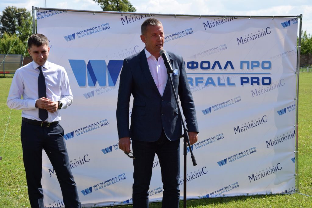 26 мая на стадионе "Артёмовец" с Днём химика сотрудников завода Вотерфолл ПРО поздравил зам.председателя городской Думы Алексей Тушминцев.
