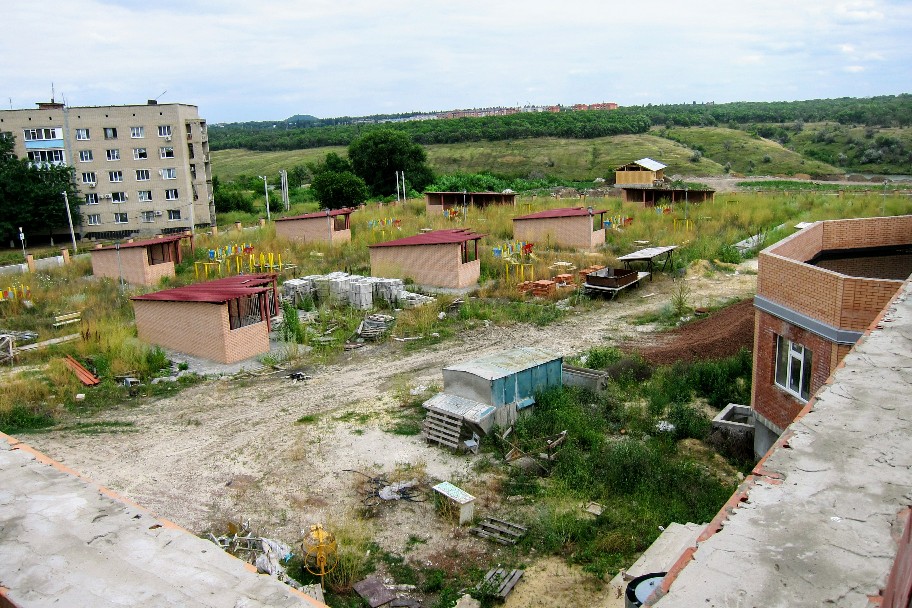 В осмотре детсада приняли участие депутаты В.Н.Правдюк, Д.В.Фёдоров, Е.Н.Жадяев, А.И.Коренев, зам.главы Администрации по вопросам строительства и архитектуры В.Б.Петров, и.о.директора МКУ «Шахтыстройзаказчик» Е.В.Балова, специалисты КСП. Первоначально все прошлись по территории детсада, осмотрели здание снаружи. В бурьяне с человеческий рост грустно прятались новенькие яркие детские площадки и лавочки, груды строительного материала перемежались с кучками строительного мусора, и на этом фоне возвышалось здание из нового кирпича, вполне современное, но совсем неухоженное, а потому — тут нет окна, там двери, тут потёки, а там отмостку забыли сделать. Депутаты подробно расспрашивали о планируемых работах, которые будут выполнены в рамках проекта по консервации объекта осенью текущего года.