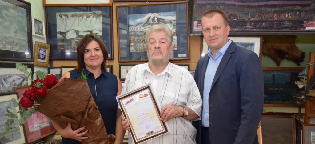 Председатель городской Думы - глава города Шахты Ирина Жукова и зам.главы Администрации Павел Стуров навестили художника в его мастерской и поздравили с юбилеем.