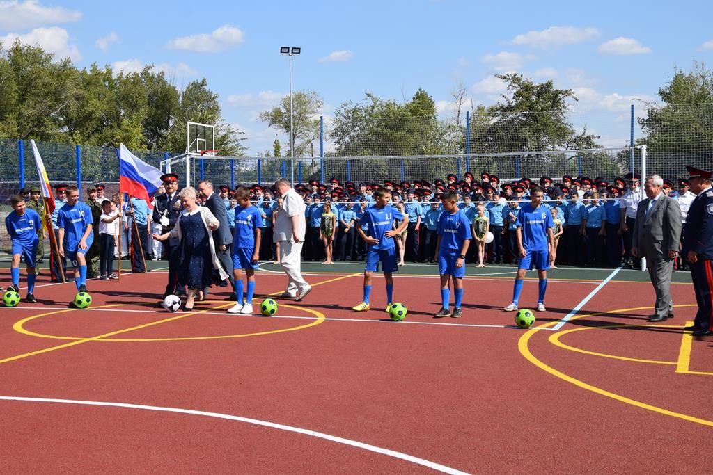 Гостям показали учебные корпуса кадетского корпуса, а также замечательную спортивную площадку, построенную в рамках федерального социального проекта «Газпром — детям!».