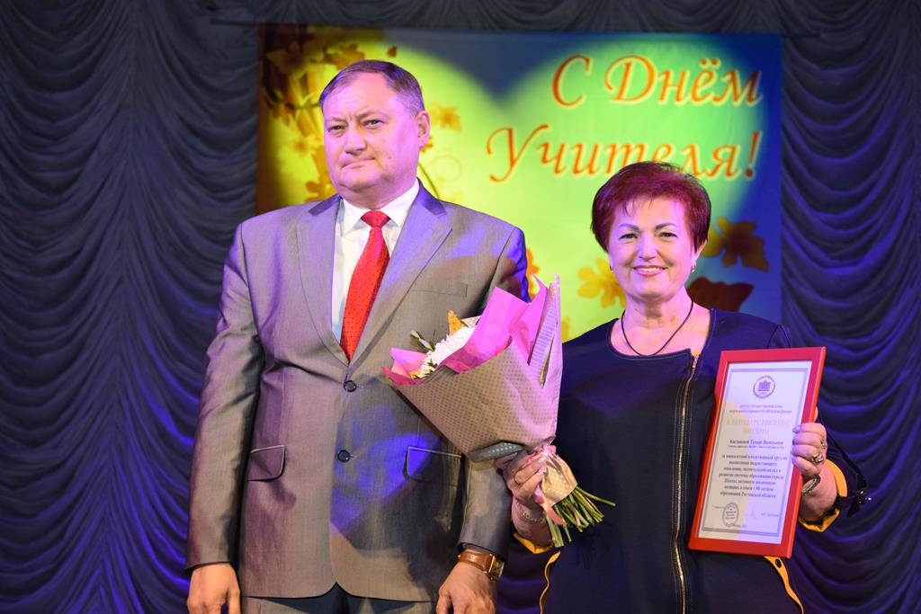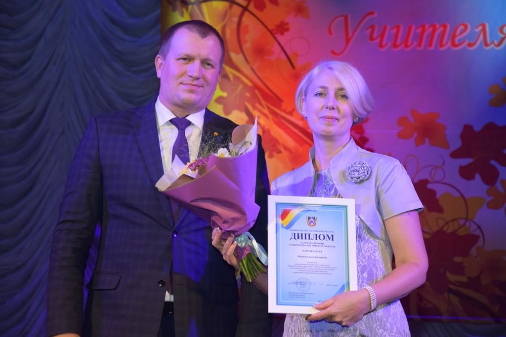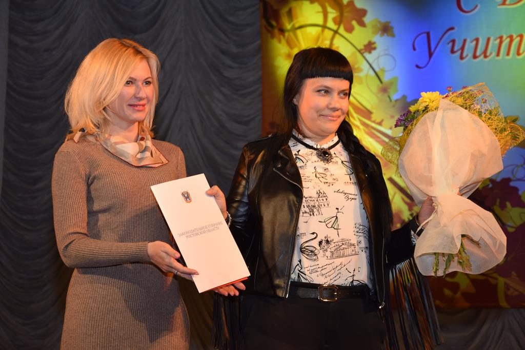 Добрые слова в адрес учителей сказала Екатерина Стенякина, пожелала им здоровья, благополучия, творческого вдохновения! Екатерина привезла с собой высокую награду — Благодарность Законодательного Собрания Ростовской области, которая была вручена директору МБОУ СОШ города Шахты N 20 Нелли Михайловне Володиной! Также Благодарственными письмами комитета Законодательного Собрания Ростовской области по молодежной политике, физической культуре, спорту и туризму были награждены: учитель истории МБОУ СОШ города Шахты N 1 Алексей Алексеевич Желтов и учитель музыки МБОУ СОШ города Шахты N 37 Юлия Александровна Гнилорыбова.