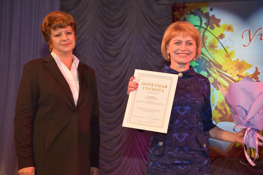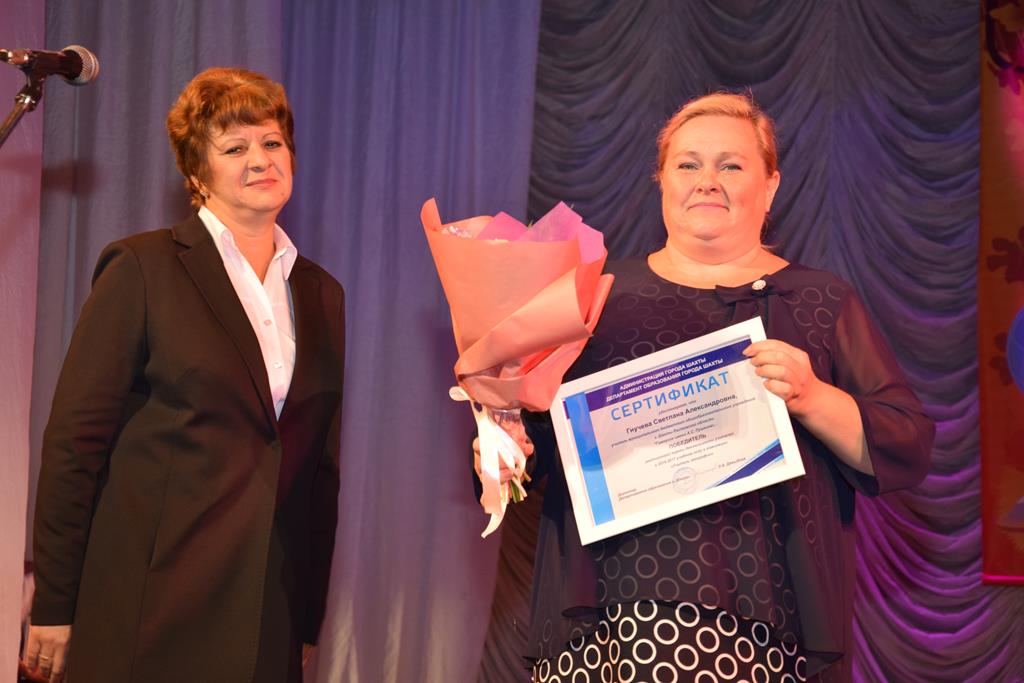 Также ещё много наград различного статуса были вручены педагогам города зам. главы Администрации П.С.Стуровым, директором департамента образования Л.Б.Давыдовой, помощником депутата Государственной Думы РФ М.И.Щаблыкина А.Ю.Якуниным.