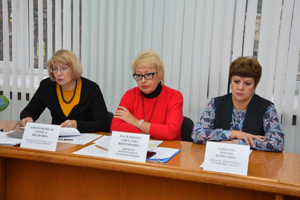 Первый вопрос — «О бюджетной ситуации 2017 года и складывающейся бюджетной ситуации 2018 года с обозначением перечня первоочередных задач, подлежащих включению в проект решения «О бюджете города Шахты на 2018 год и на плановый период 2019 и 2020 годов», выступили директор департамента труда и социального развития Л.И.Брюховецкая, директор департамента образования Л.Б.Давыдова, директор департамента по физическому развитию и спорту С.В.Федосеев, и.о.директора департамента культуры Н.Ю.Пасхалова, директор департамента здравоохранения С.В.Василькова.