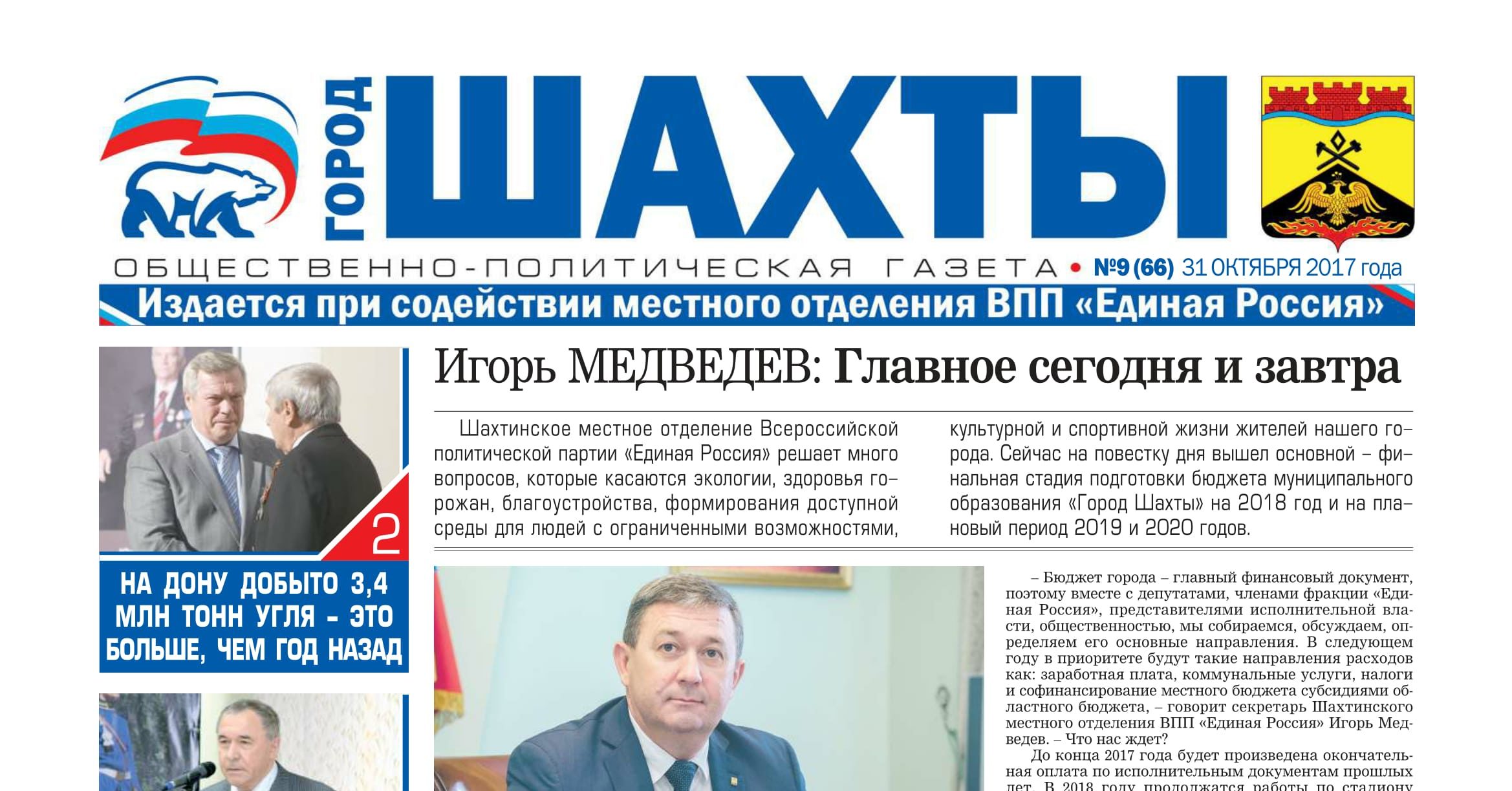 В газете — городские новости, информация о работе Администрации и городской Думы города Шахты, партийные проекты «Единой России» и много всего интересного!
