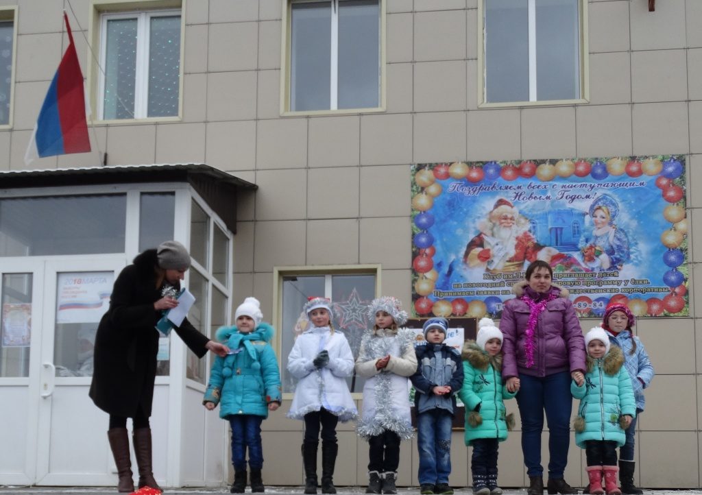 С наступающим Новым годом жителей посёлка Красина поздравили помощники депутатов по избирательному округу №17 И.А.Жуковой и по избирательному округу №16 А.И.Кундрата. Самым маленьким участникам самодеятельности были вручены билеты на Новогоднюю ёлку в Шахтинский драматический театр и Городской Дворец культуры от председателя городской Думы — главы города Шахты Ирины Анатольевны Жуковой.