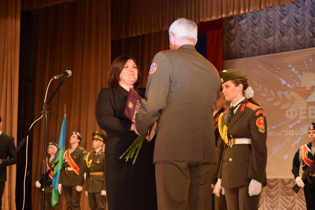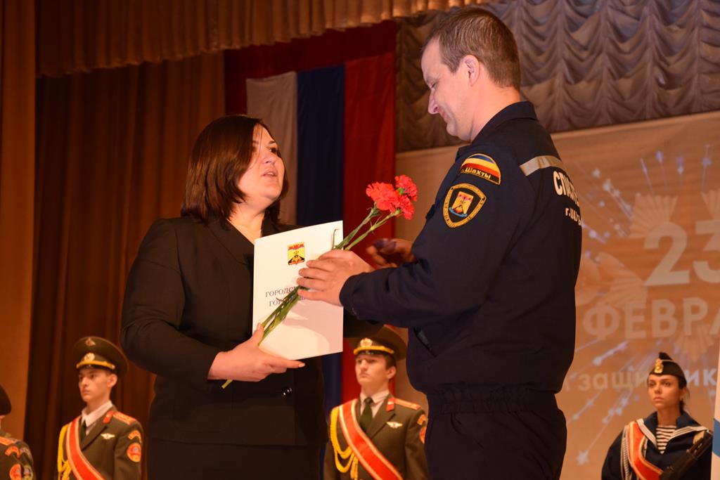 Выполняя решение городской Думы города Шахты, Ирина Жукова вручила Почётную грамоту Думы и денежную премию военному комиссару города Шахты и Октябрьского района Ивану Ивановичу Вансовичу — в связи со 100-летием со дня создания Красной Армии!