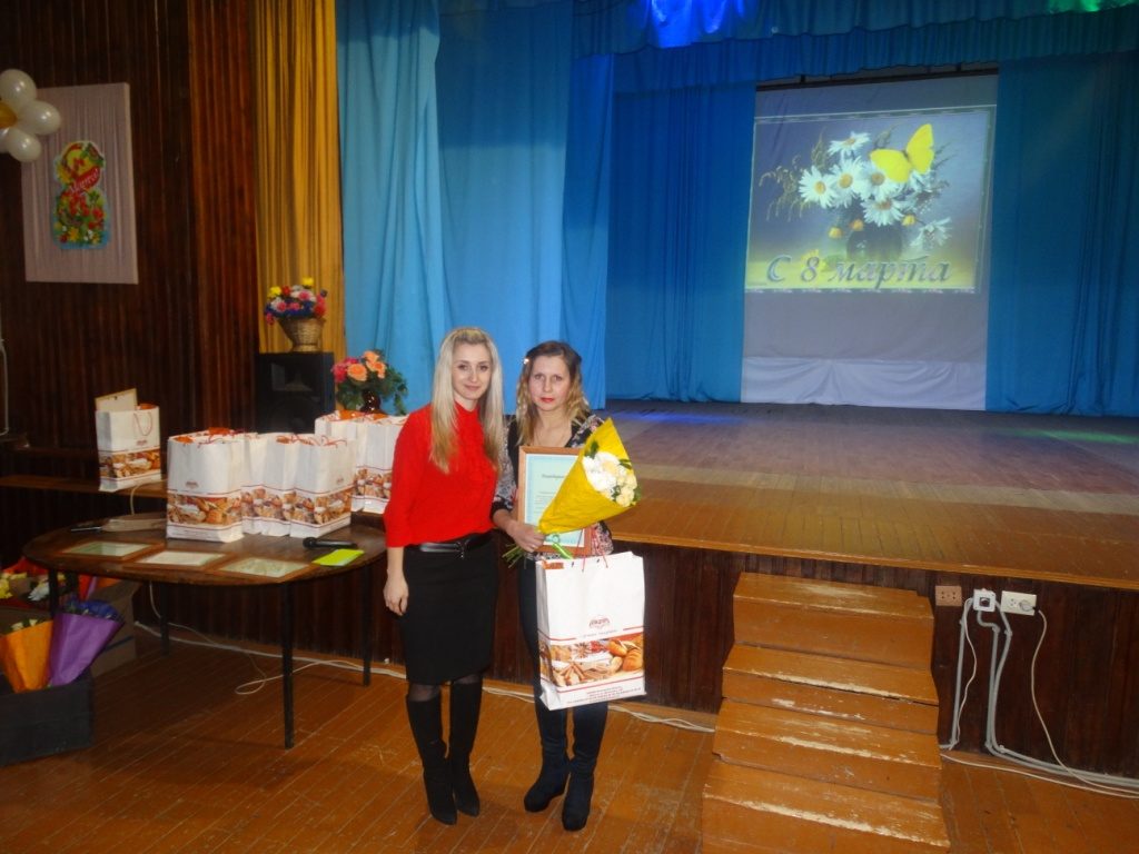 Трогательные слова восхищения и признательности произнесла помощница депутата по избирательному округу №16 Александра Игоревича Кундрата — Кристина Александровна Денисенко, и также вручила подарки и весенние цветы.