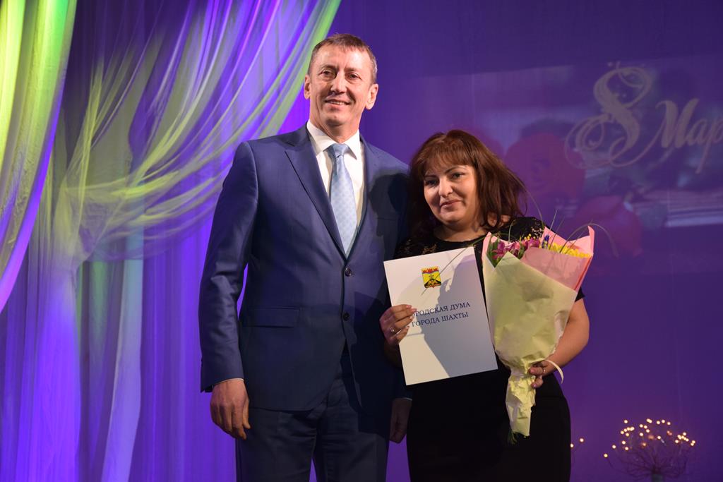 — Багян Гаяне Зиноковне — административному участковому Центрального территориального отдела № 1 Администрации города Шахты за активную общественную деятельность, направленную на развитие местного самоуправления, а также в связи с празднованием Международного женского дня;