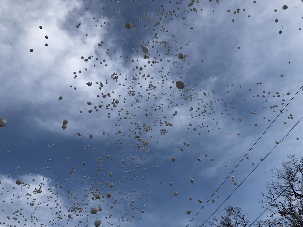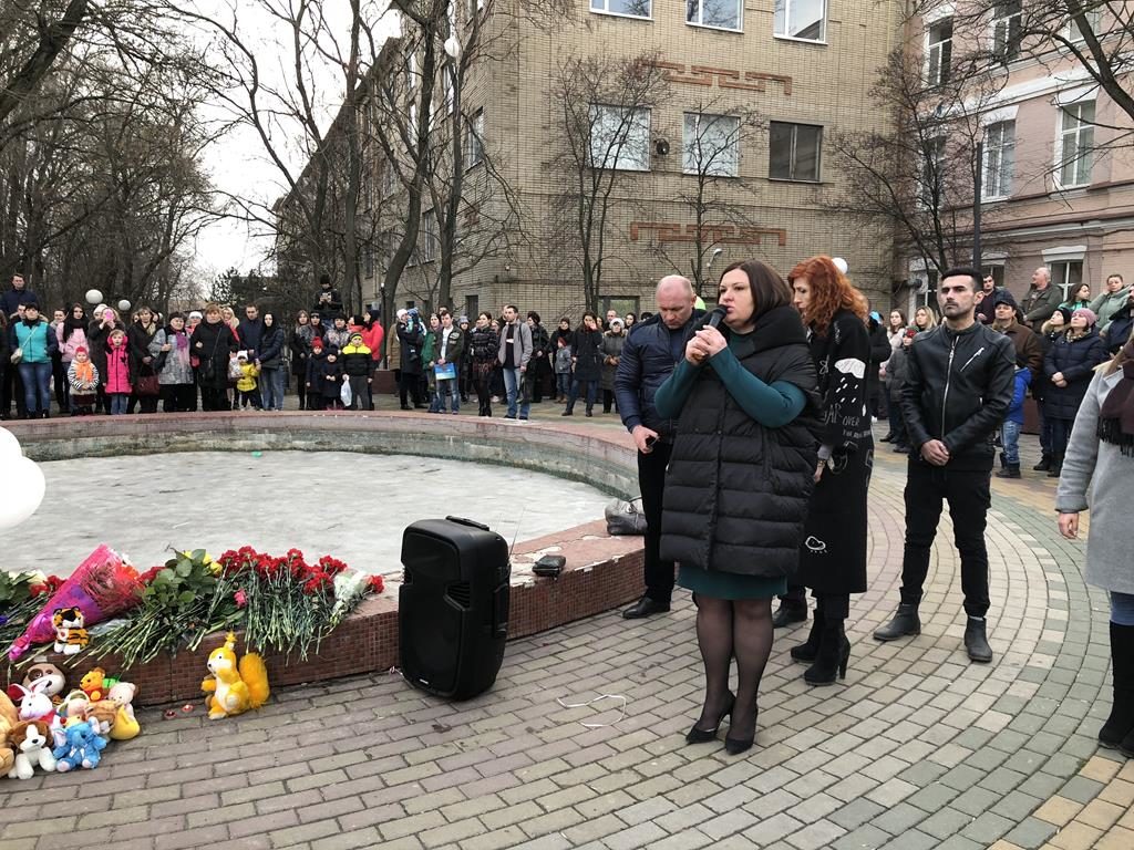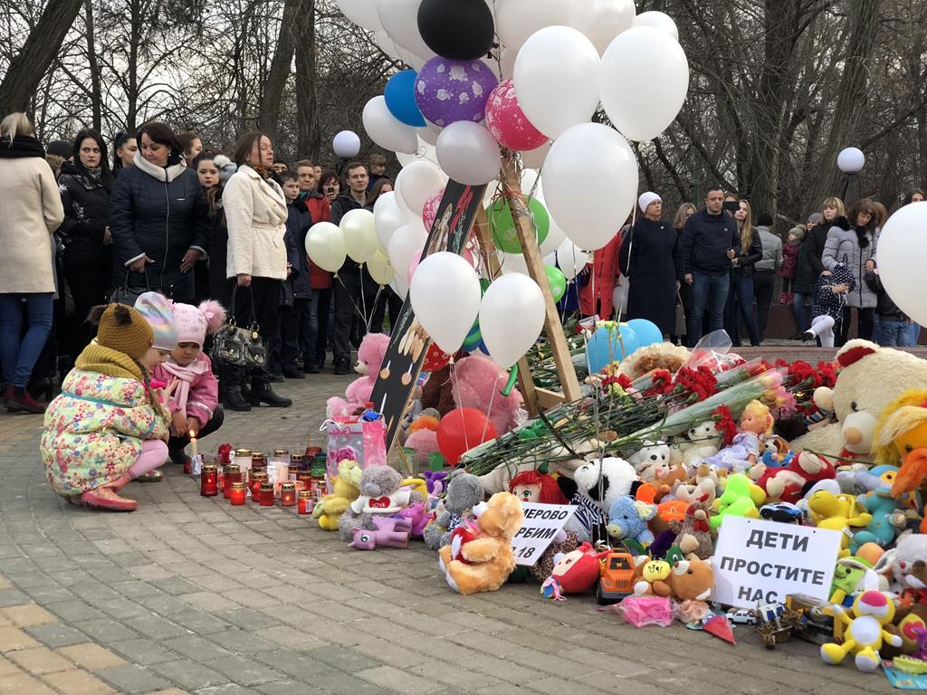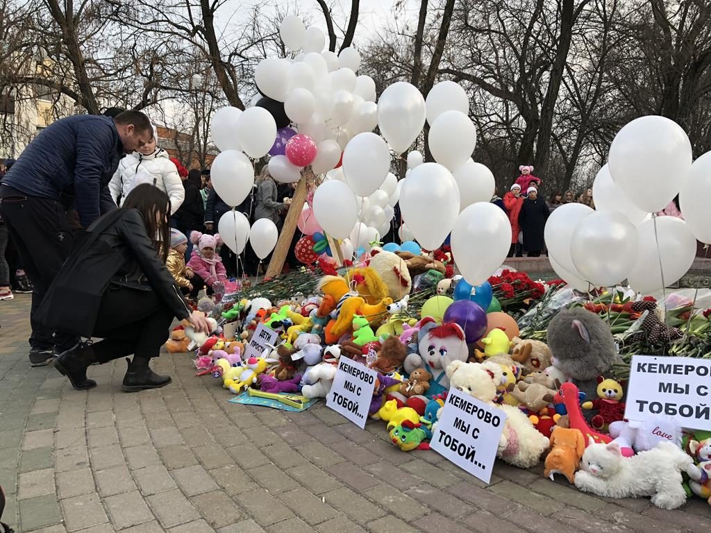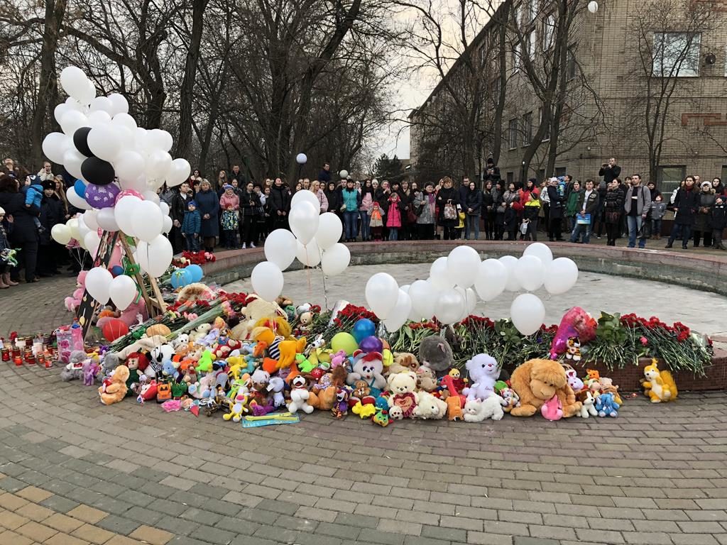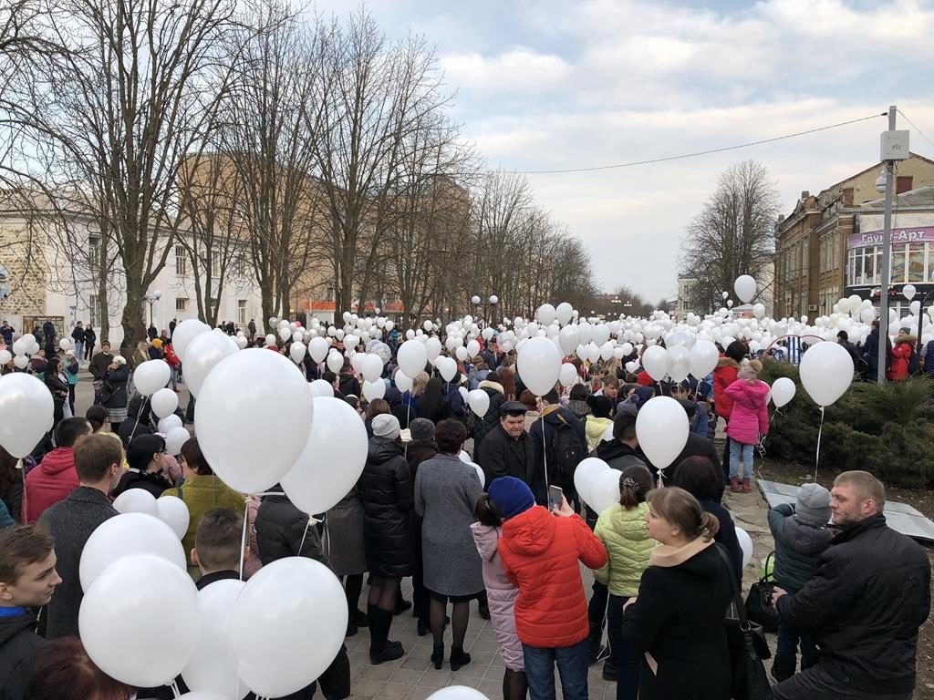 Сотни белых шаров взмыли в небо, туда, куда ушли души детей и взрослых, принявших тяжёлую мучительную смерть от огня и удушья. В течение всего дня к стенду памяти горожане несли цветы, детские игрушки, шары, не скрывая слёз скорбели по погибшим. А после рабочего дня пришли сюда на короткий митинг, чтобы стоя плечом к плечу почувствовать единство нашего народа, для которого нет чужой боли…