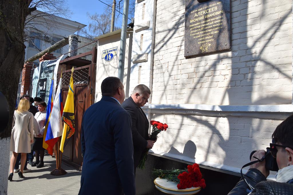 Выступили перед собравшимися и.о.главы Администрации города Шахты Анатолий Глушков, вдова Василия Алексеева Олимпиада Ивановна, которая поблагодарила всех, кто выступил с инициативой, а затем помог реализовать проект по установке памятной доски. А затем вдова и сын Василия Алексеева торжественно открыли памятную доску — сдёрнули полотно и взгляду всех присутствующих открылся образ легендарного спортсмена, запечатлённый в камне! Советского тяжеловеса зрители всегда приветствовали стоя, аплодисментами — в знак уважения к силе и мощи этого великого спортсмена. Вот и этот день не стал исключением, Василию Алексееву шахтинцы подарили бурные аплодисменты и море цветов!
