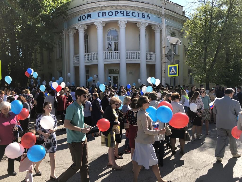 По главной улице с оркестром! Как в старые добрые, а точнее в советские времена, сотни горожан с шарами, транспарантами и флажками прошли колонной по улице Советской от Дома пионеров до площади им.Ленина. Лозунг демонстрации — «За достойный труд, за справедливую социальную политику». Организаторы митинга — профсоюзные организации города и председатель Шахтинской городской организации профсоюза работников государственных учреждений Татьяна Зиновьева.