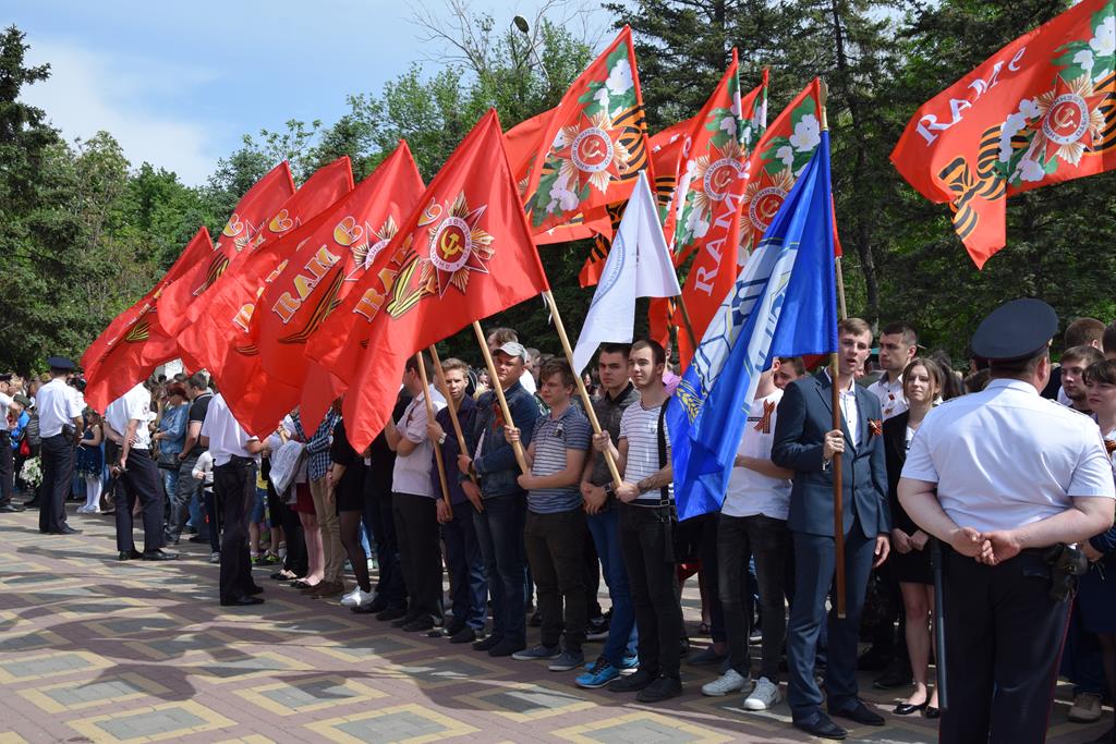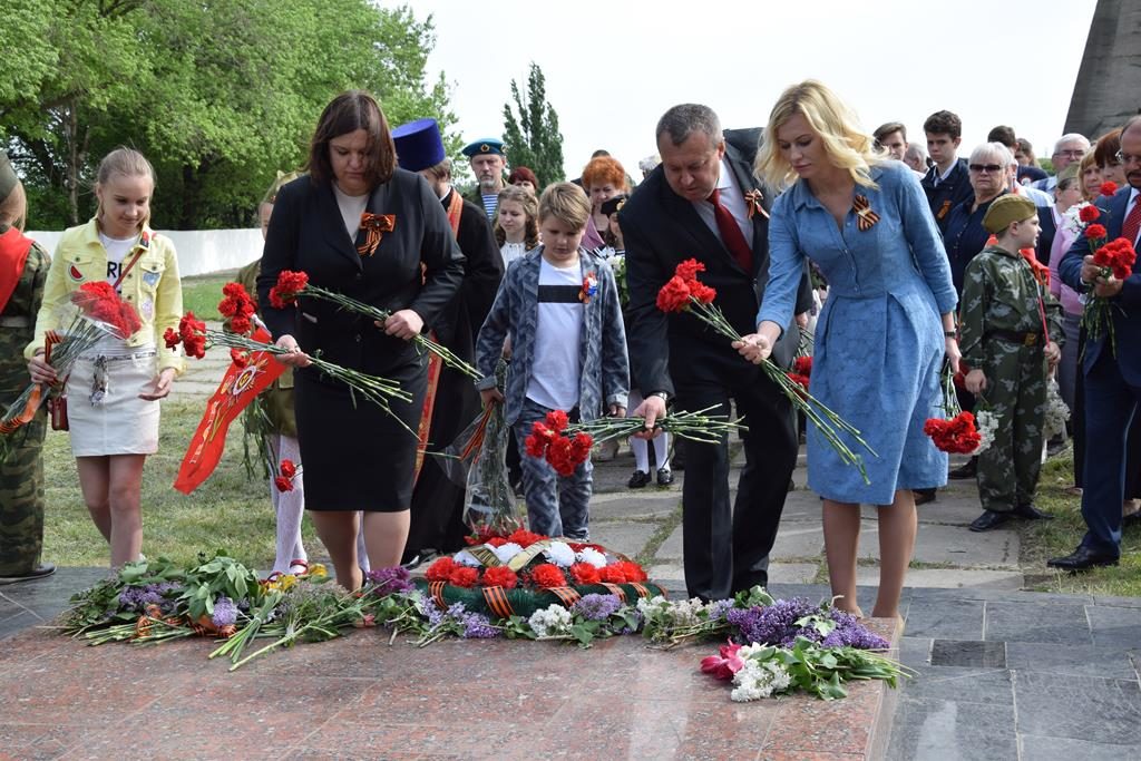 В 9.15 на площади 40-летия Победы состоялось возложение цветов и венков к подножию монумента Солдата-освободителя. В торжественной церемонии приняли участие руководители органов местного самоуправления, депутаты Законодательного Собрания Ростовской области, кадеты, школьники, студенты, сотрудники учреждений, предприятий. И от памятника Воину-освободителю началось шествие торжественное шествие колонны к мемориальному комплексу «Слава» в Александровском парке.