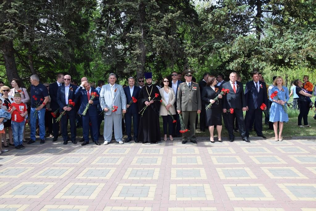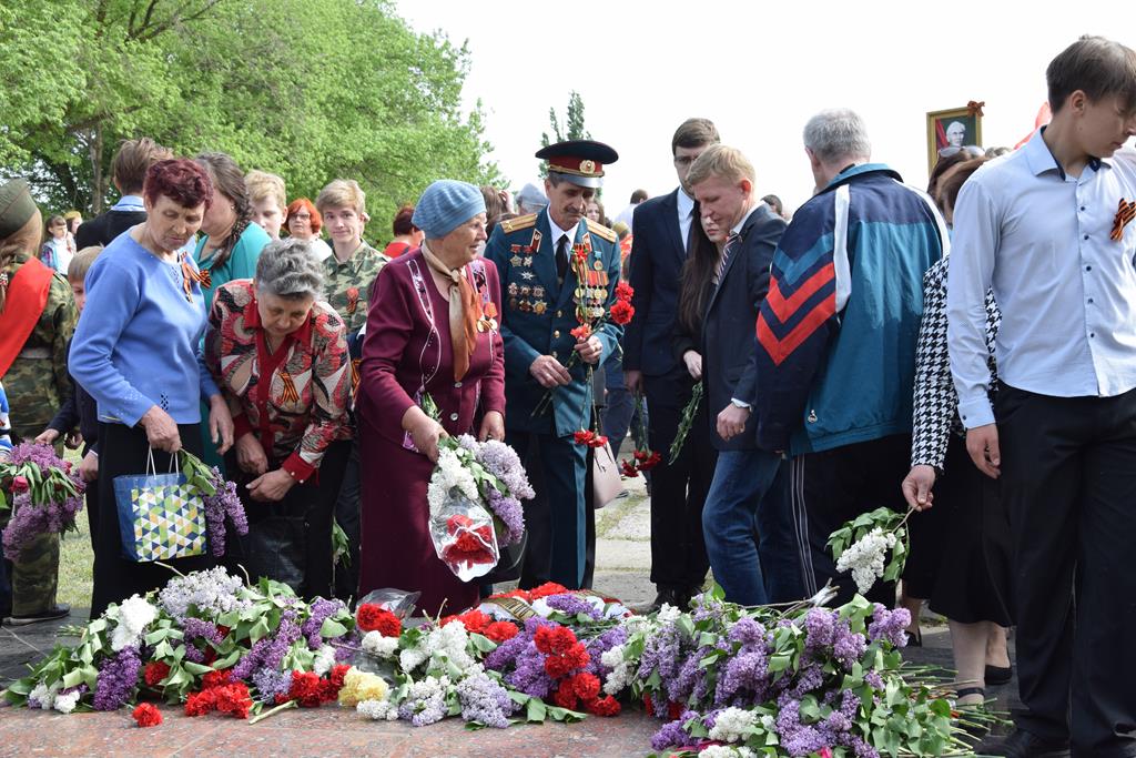 К ветеранам войны, труженикам тыла, жителям города со словами поздравлений с Великой Победой в войне и благодарностью к воинам за подвиг и проявленный героизм обратились депутат Законодательного Собрания Ростовской области, председатель комитета по молодежной политике, физической культуре, спорту и туризму Екатерина Стенякина, председатель городской Думы – глава города Шахты Ирина Жукова, исполняющий обязанности главы Администрации Анатолий Глушков. Пожелал участникам митинга здоровья и мирного неба над головой ветеран Великой Отечественной войны Алексей Ларионов. От молодёжи города слова признательности поколению победителей сказал председатель Молодёжного парламента Артём Греков. По всем погибшим в годы войны была отслужена панихида. А затем все участники митинга возложили цветы и венки к Братской могиле и к монументу «Жертвам фашизма».