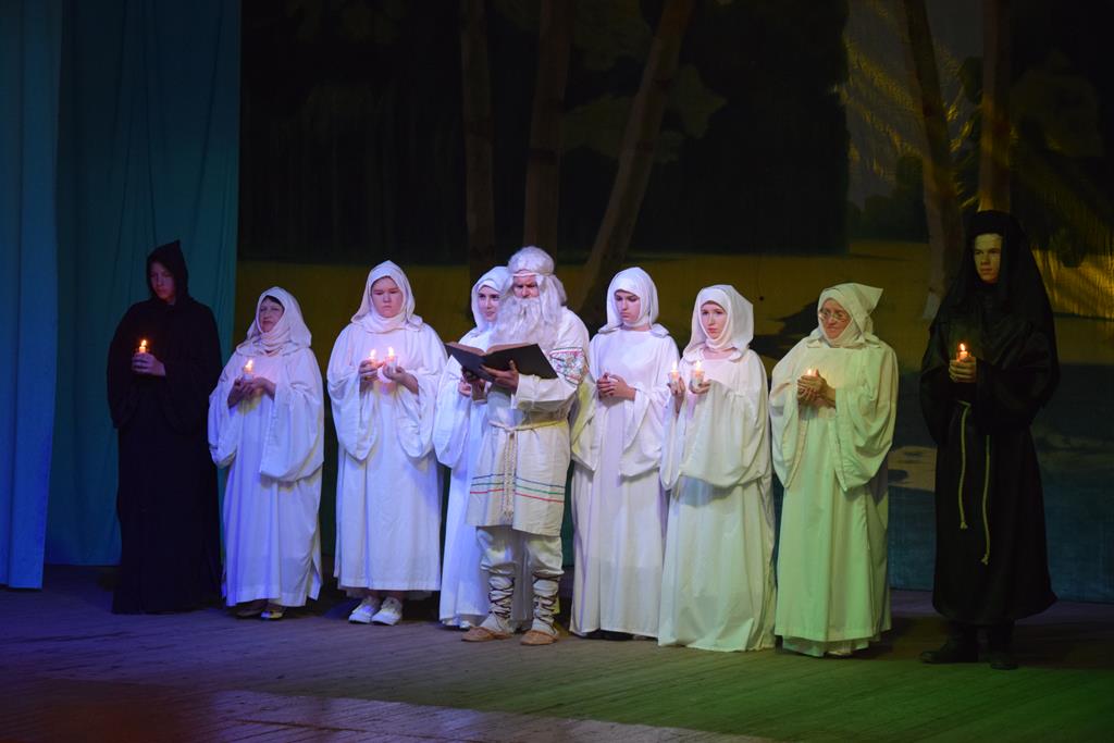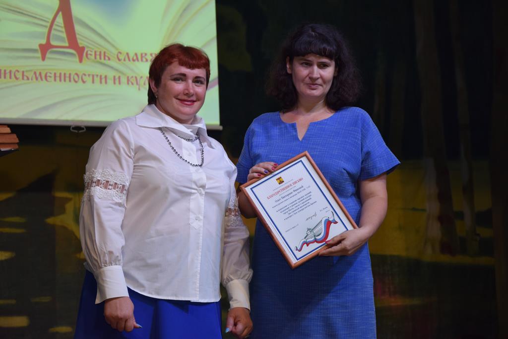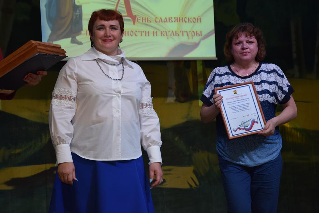 Праздничные мероприятия начались ещё у входа в Дом культуры, где учащимся школ №22 и №27 юные артисты в стилизованных русских костюмах рассказывали о времени создания славянской письменности, обычаях народа, песнях и сказаниях. А в развитие темы в фойе здания расположились артистки в народных костюмах, которые создали настоящий казачий уголок по образу куреня — с люлькой для младенца, прялкой, вязанием. Женщины душевно пели казачьи песни. А затем сотрудники и участники творческих кружков показали на сцене театрализованное преставление.