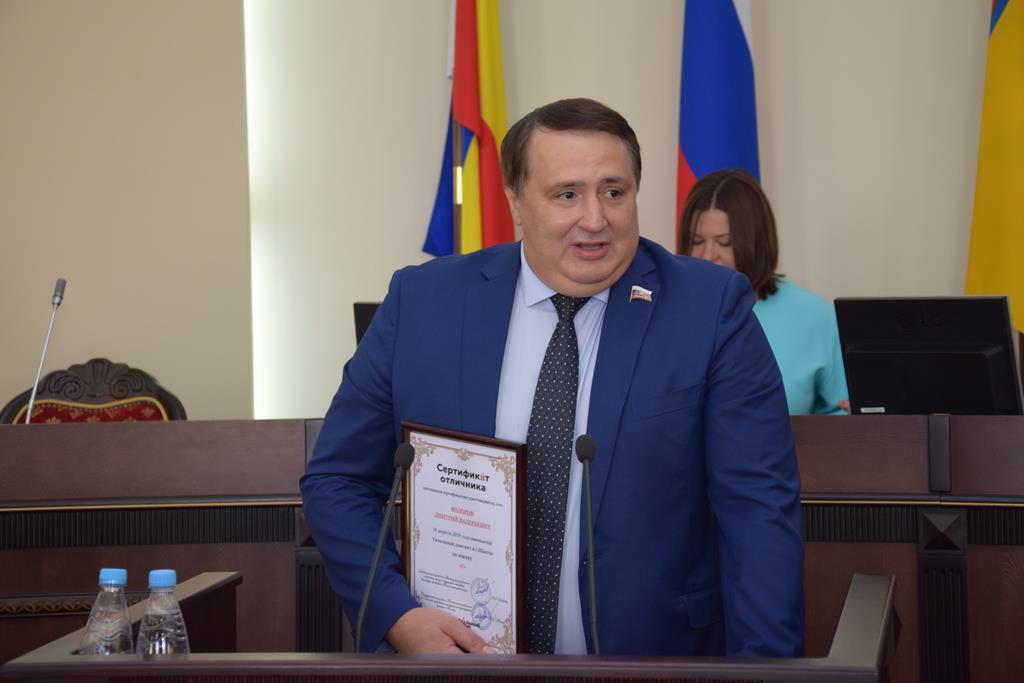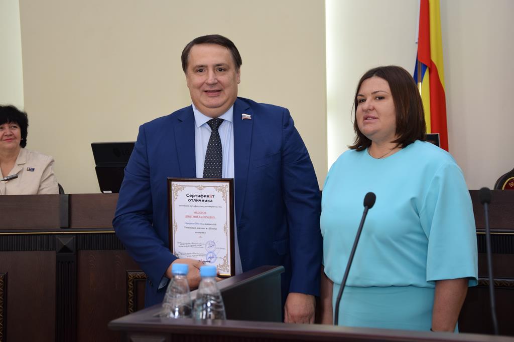 Также был вручён «Сертификат отличника»депутату городской Думы Дмитрию Фёдорову, который принял участие в «Тотальном диктанте». И.А.Жукова отметила, что депутаты гордятся тем, что представитель депутатского корпуса городской Думы знает и любит родную речь, на своем примере учит этому подрастающее поколение!