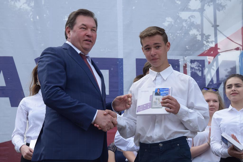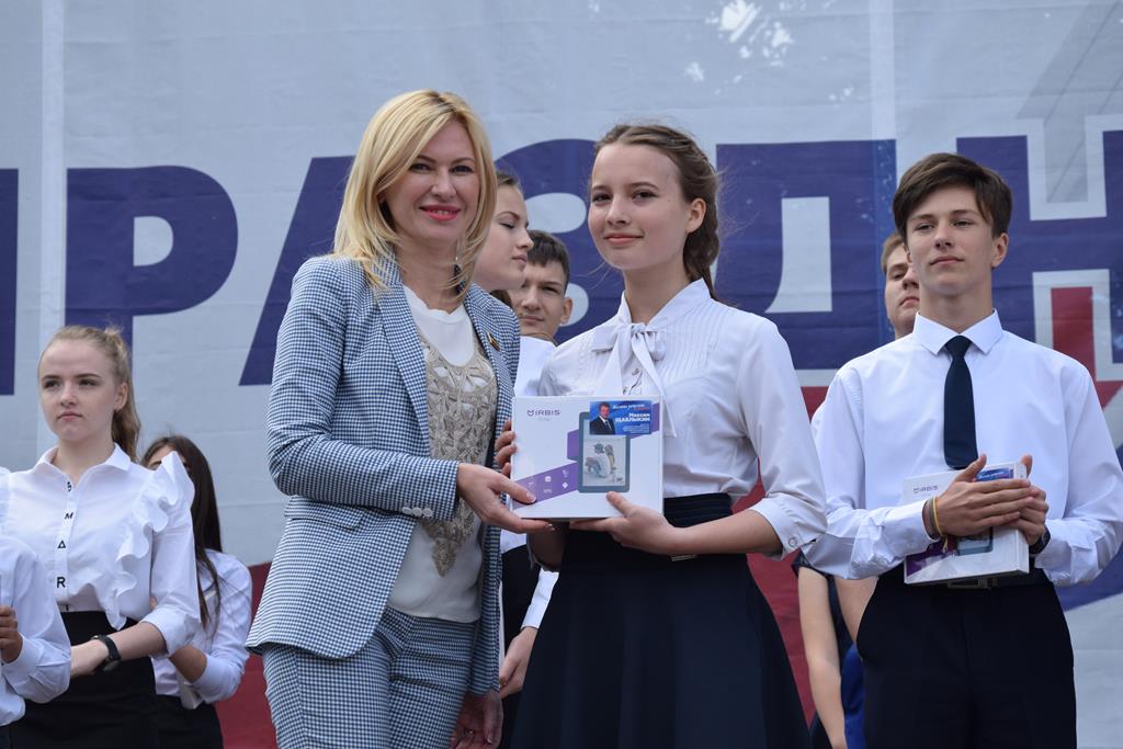 А праздник в Александровском парке набирал обороты: на сцене около детской площадки выступали юные артисты, не менее насыщенная программа была на главной сцене парка, где свои концертные номера показывали творческие коллективы города. Там же Виктор Шумеев и Екатерина Стенякина вручили грамоты и призы 38 школьникам города, показавшим лучшие результаты в учёбе и творчестве.