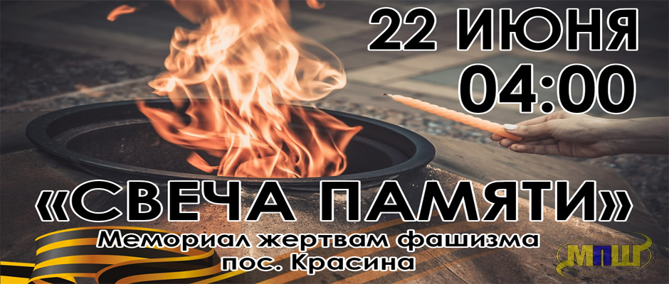 22 июня в 3.45 утра состоится акция «Свеча памяти» на мемориальном комплексе «Жертвам фашизма» в посёлке Красина.