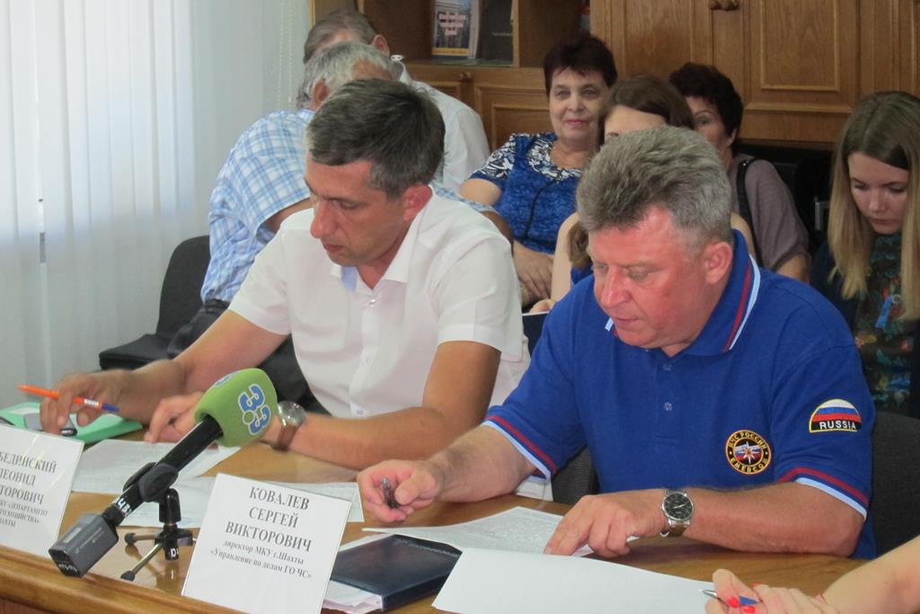 Первый вопрос — «Информация о деятельности МКУ «ГО и ЧС», в том числе об эффективности использования имеющейся спецтехники и реестре необходимого оборудования для качественного исполнения полномочий данного учреждения», выступил директор МКУ г.Шахты «Управление по делам ГО ЧС»С.В.Ковалёв. Управление по делам ГО ЧС осуществляет свою деятельность в рамках муниципальной программы «Защита населения и территории от чрезвычайных ситуаций, обеспечение пожарной безопасности и безопасности людей на водных объектах», которая направлена на проведение на территории муниципального образования «Город Шахты» комплекса мероприятий в области гражданской обороны, по защите населения и территорий от чрезвычайных ситуаций природного и техногенного характера, обеспечения первичных мер пожарной безопасности и безопасности людей на водных объектах, с целью повышения безопасности проживающего населения и сохранности материальных средств.