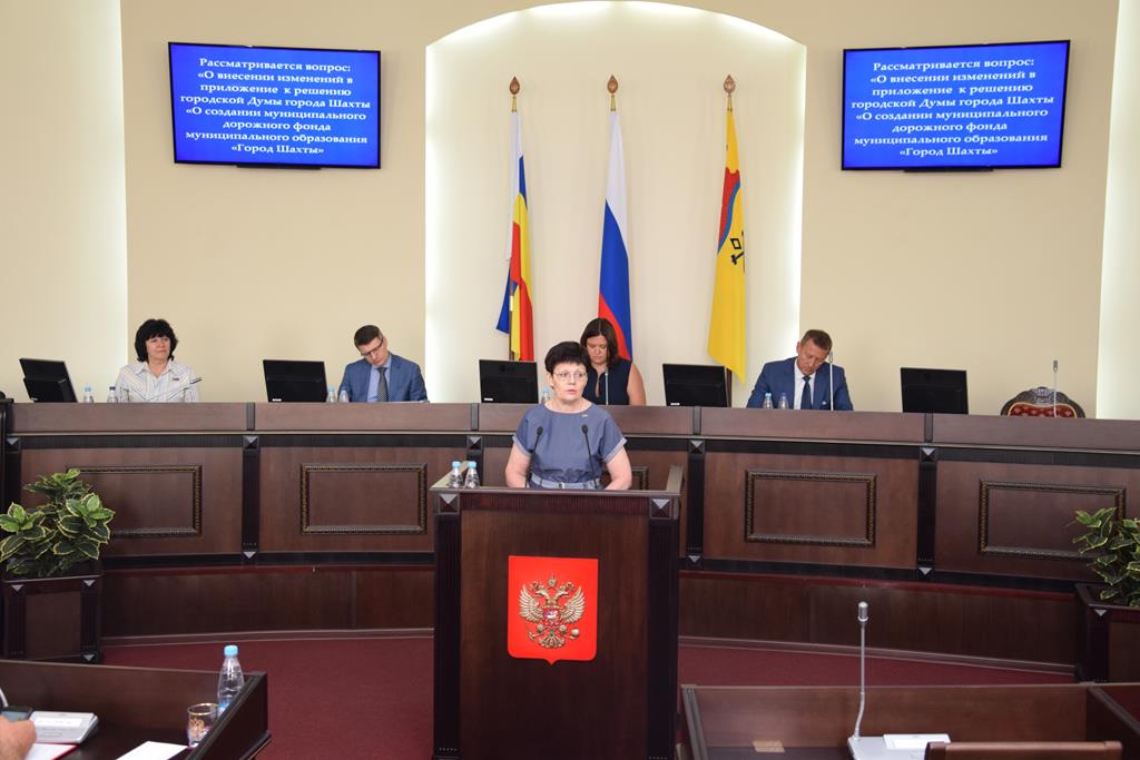 Первый вопрос — «О внесении изменений в приложение к решению городской Думы города Шахты «О создании муниципального дорожного фонда муниципального образования «Город Шахты», выступила директор департамента финансов Л.А.Зуева. В связи с поступлением обращения МКУ «Департамент городского хозяйства» г.Шахты о необходимости проведения работ по содержанию автомобильных дорог местного значения подготовлен проект решения по внесению изменения в Порядок формирования и использования бюджетных ассигнований муниципального дорожного фонда муниципального образования «Город Шахты» в части увеличения источников формирования объема бюджетных ассигнований муниципального дорожного фонда города Шахты. В подпункте 19 пункта 3 Порядка формирования и использования бюджетных ассигнований муниципального дорожного фонда муниципального образования «Город Шахты» процент отчисления от земельного налога, поступающего в 2018 году, увеличен с 2,0% до 3,3%.