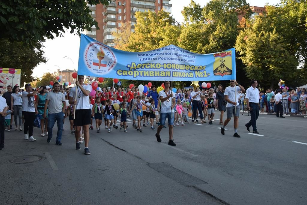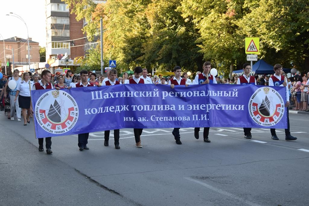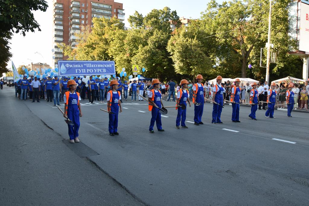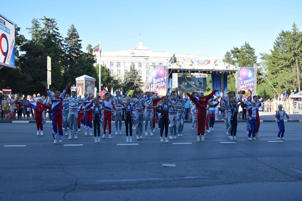 Прошли колонны известных в городе предприятий — «Донуголь», «Шахтинская керамика», БТК-групп, «Аютинский хлеб», «Лента», группа компаний «Замок» и многие другие. Поприветствовал город врачей, медиков, учителей, работников пенсионного фонда, центра занятости населения, социальных служб. Отдельным блоком были представлены спортивные организации, бюджетные и коммерческие, спортивные школы и клубы единоборств. Богаты шахты танцевальными коллективами, музыкальными, причём уже образуются такие возрастные симбиозы, когда танцуют и мамы, и дети, а папы не ленятся обклеивать свои машины символикой коллектива и возить артистов на различные соревнования по всей стране.