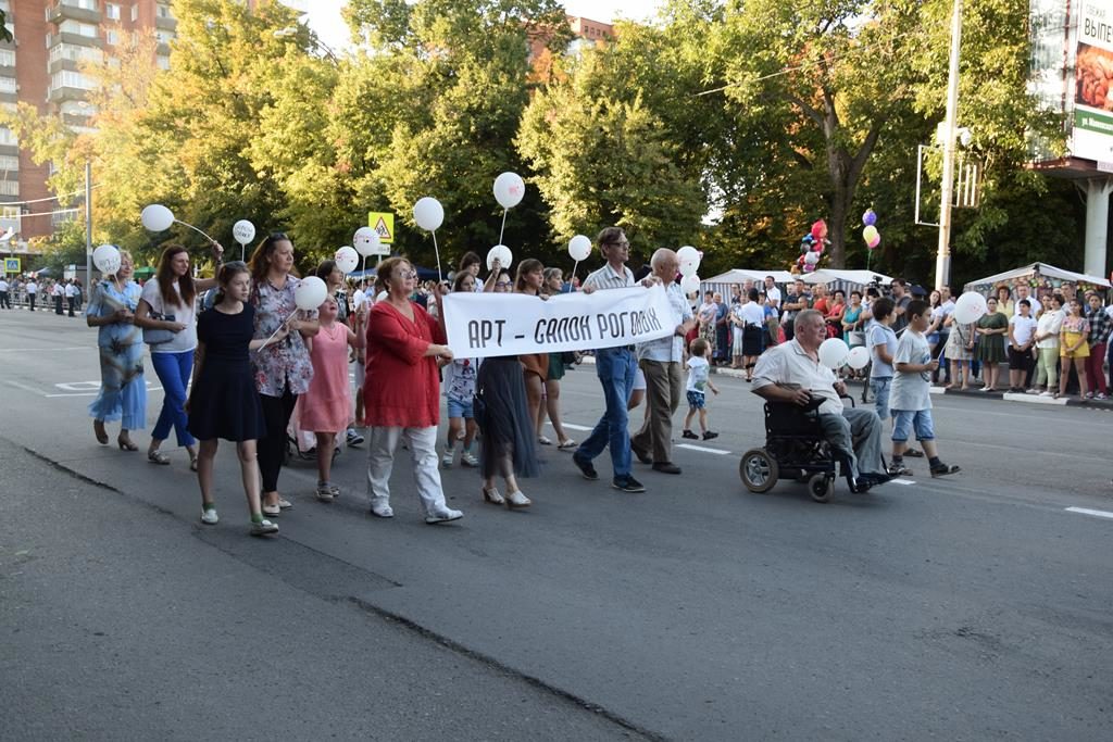 В этом году в праздничном шествии впервые приняли участие участники и посетители арт-салона Владимира Рогова, художника по дереву и инвалида-колясочника, который своим оптимизмом заряжает разных людей, помогает творчески развиваться детям с ограниченными возможностями. Комсомольский экс-актив тоже дал о себе знать рядами людей, чьи лица и имена хорошо знакомы городу.