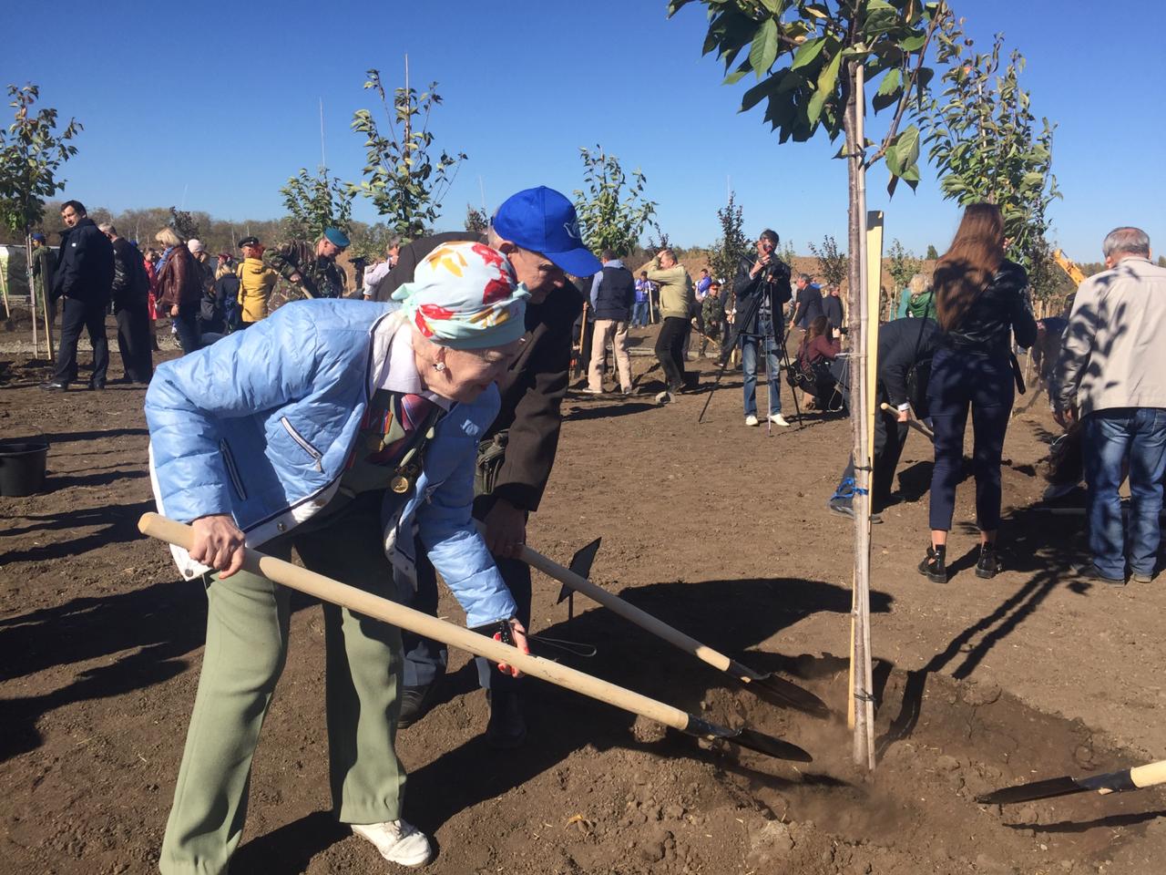 Ветераны Великой Отечественной Войны, представители Правительства Ростовской области, органов местного самоуправления, общественности, депутаты различных уровней на территории площадью 1,1 га высадили около 200 декоративных деревьев — яблоня Недзвецкого и вишня мелкопильчатая.