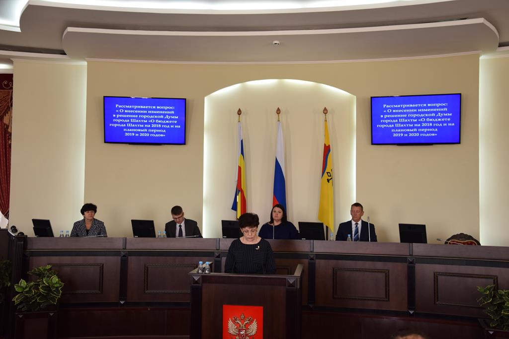 Вопросы: «Информация об исполнении бюджета города Шахты за 9 месяцев 2018 года», «О внесении изменений в решение городской Думы города Шахты «О бюджете города Шахты на 2018 год и на плановый период 2019 и 2020 годов», «О внесении изменений в Положение о бюджетном процессе в городском округе муниципального образования «Город Шахты» доложила Зуева Л.А. – директор Департамента финансов Администрации города Шахты.