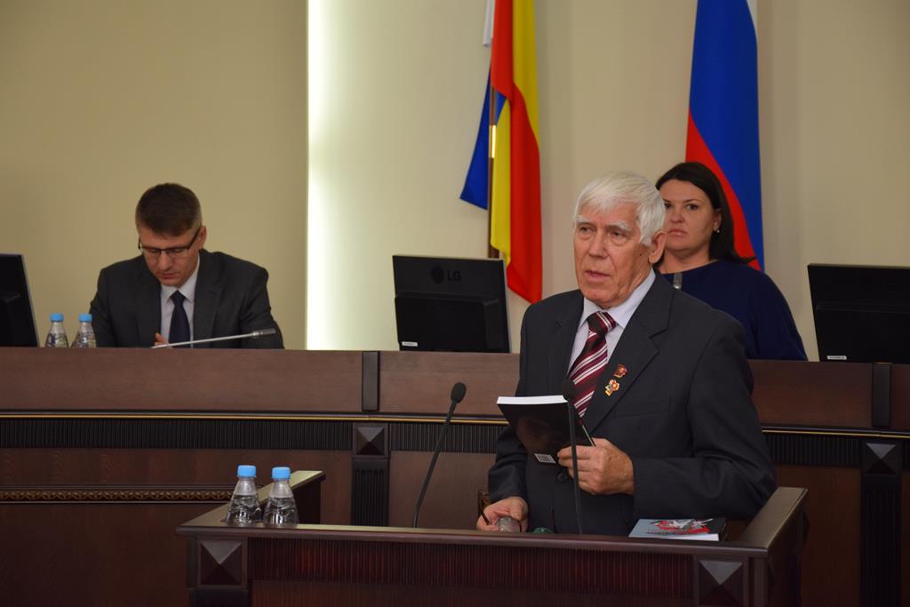 Было предоставлено слово Федосееву Александру Николаевичу ‒ секретарю комитета ВЛКСМ шахты «Южная» в 1976-1978 годах и зав. сектором профтехобразования Ростовского обкома комсомола в 1970-1976 года, который после выступления вручил книгу «Летопись Шахтинского комсомола» депутатам-спонсорам, участвовавшим в ее издании.