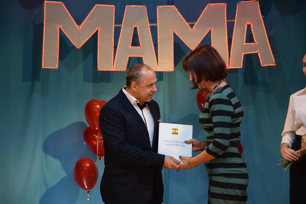 Традиционно в этот день в зале Дома культуры царило праздничное настроение. С этим душевным праздником поздравить женщин приехали Глава Администрации города Шахты А.В.Ковалев, депутат городской Думы по 13 округу, председатель комитета по местному самоуправлению и молодежной политике К.К.Коренев. Мама — самое дорогое, что есть в жизни каждого человека, это наш свет, любовь, забота! И поэтому все самые добрые слова в этот день — нашим матерям! Всем присутствующим в зале женщинам пожелали крепкого здоровья, прекрасных детей, благополучия, счастья и радости, внимания и любви родных и близких!
