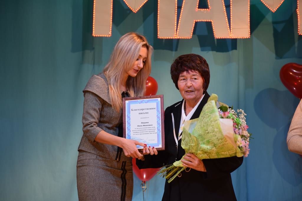 Моношовой Алле Николаевне – члену общественной организации «Союз солдатских матерей» за многолетнюю общественную деятельность, активное участие в жизни города и воспитание подрастающего поколения в духе лучших гражданско-патриотических традиций, а также в связи с празднованием Дня матери